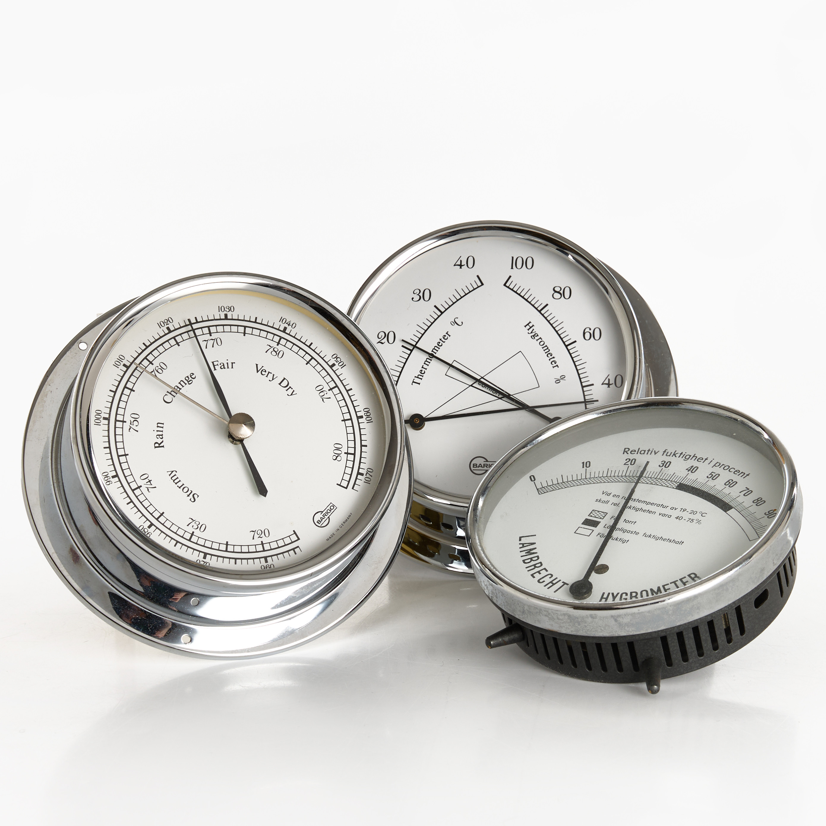 4217770. HYGROMETER - THERMOMETER - BAROMETER, 3 Stück, Lambrecht bzw. Barigo.