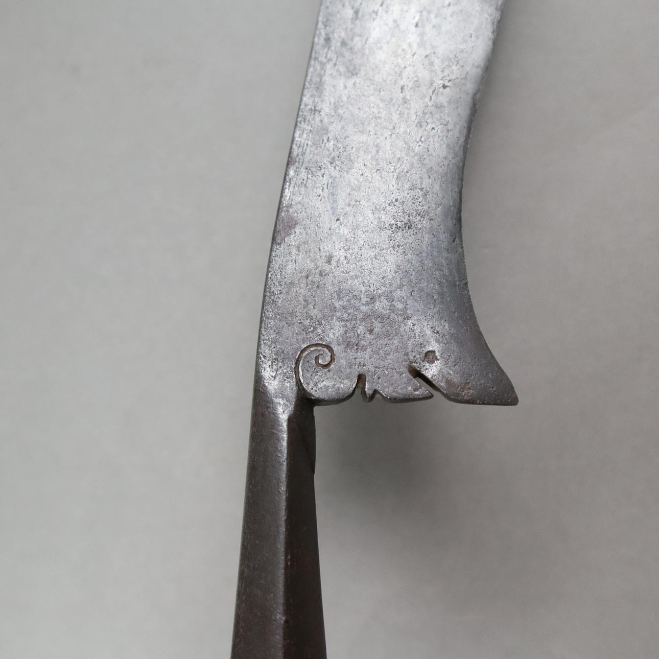 teils Altersspuren, Holzgriff mit Rissbildung.