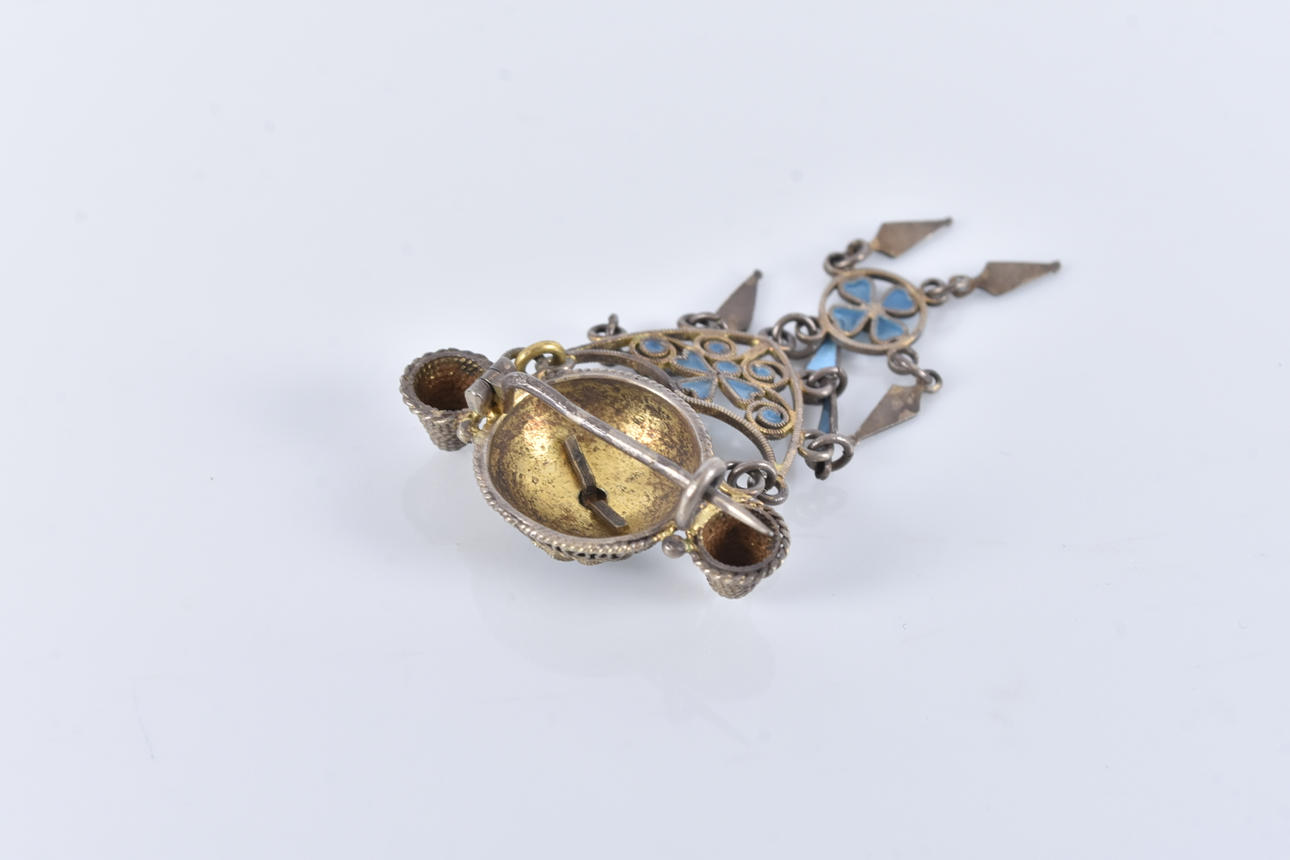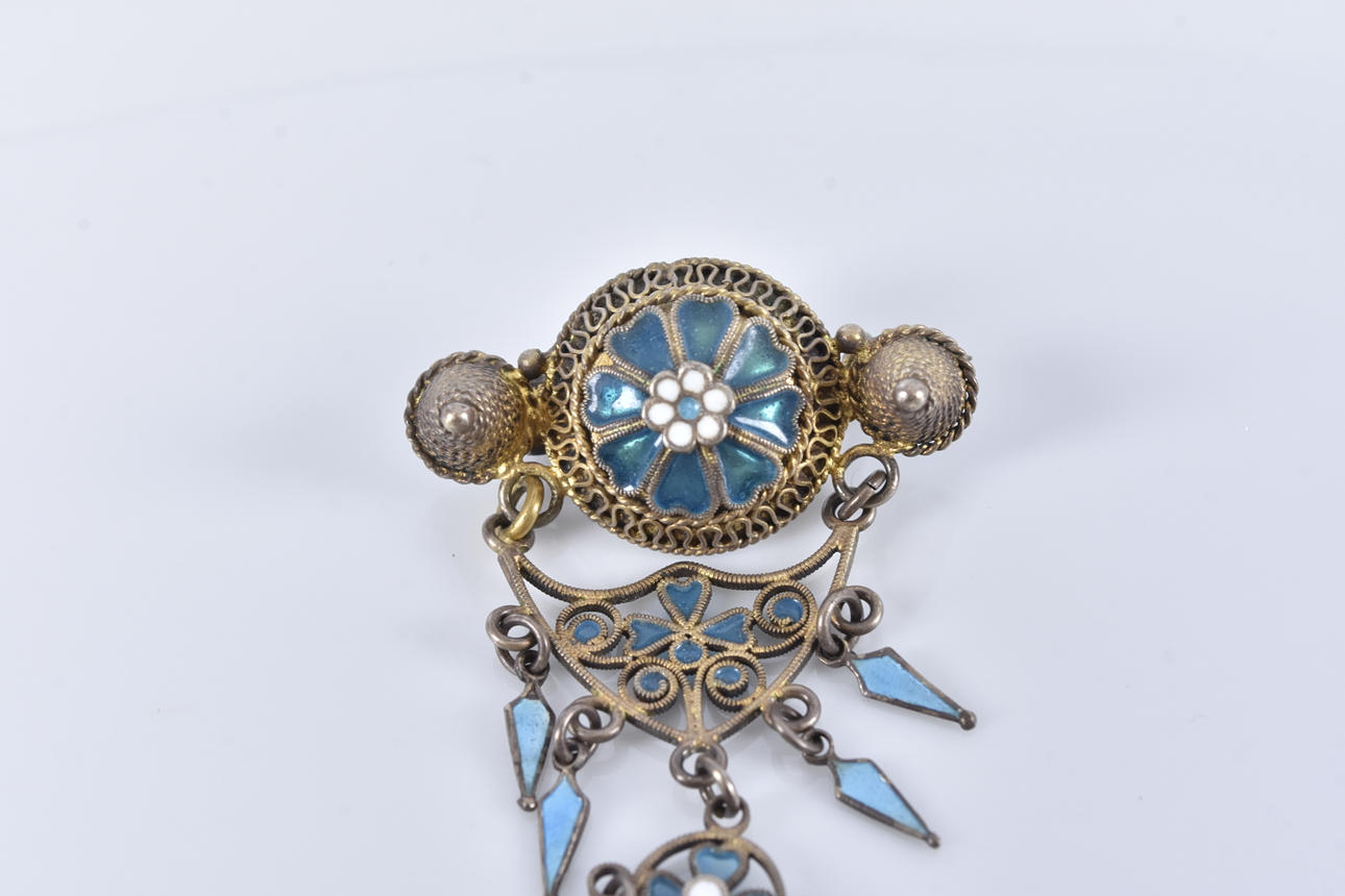 4219449. EMAILLE-BROSCHE, antiker Modeschmuck, vergoldetes Metall.