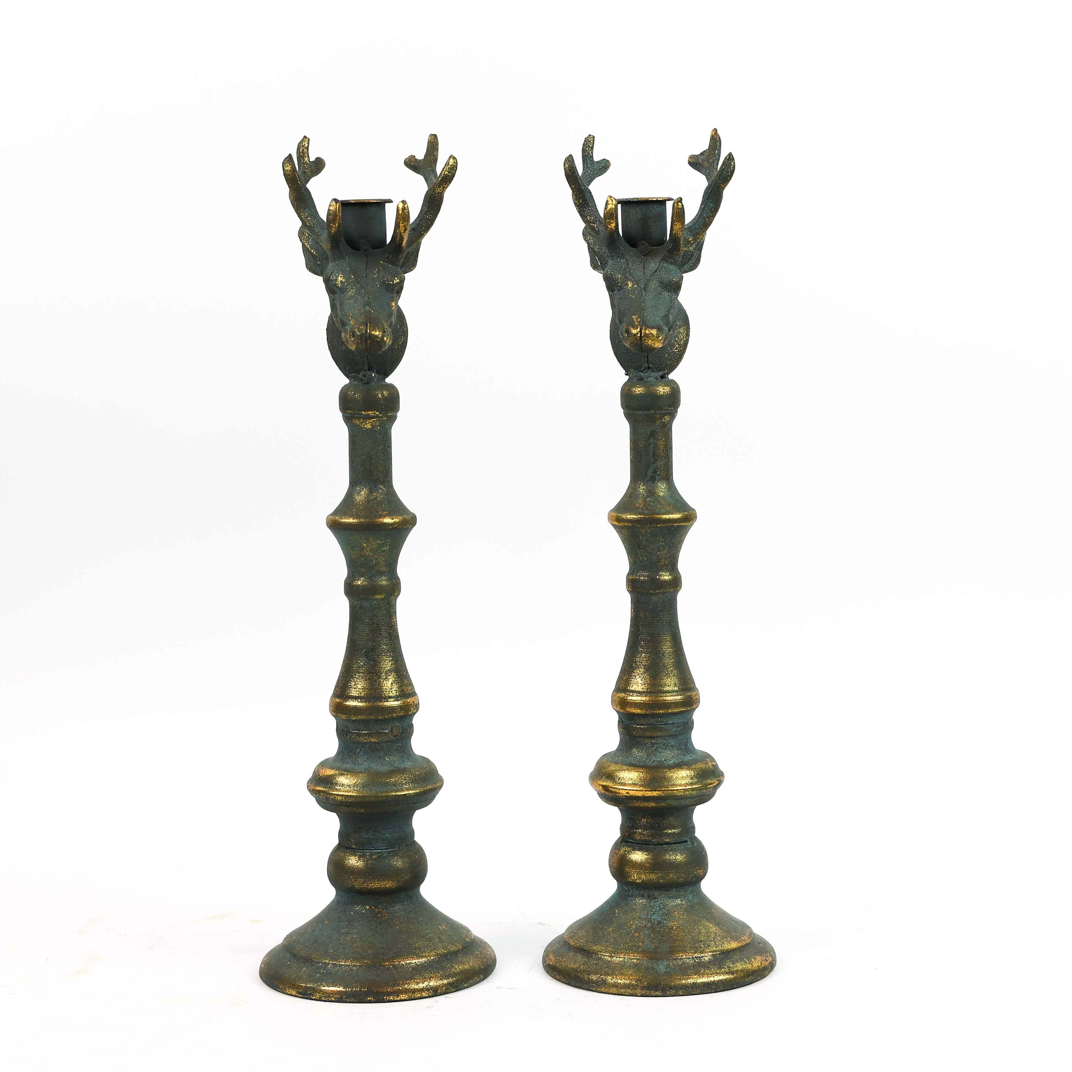 4221125. KERZENSTÄNDER, EIN PAAR, MIT HIRSCHKOPF-DETAIL.