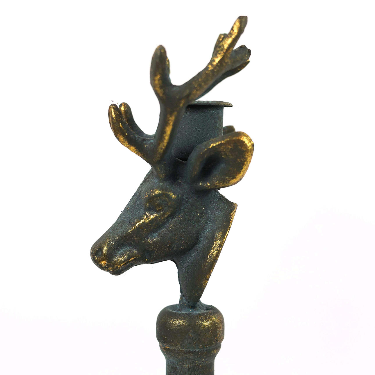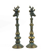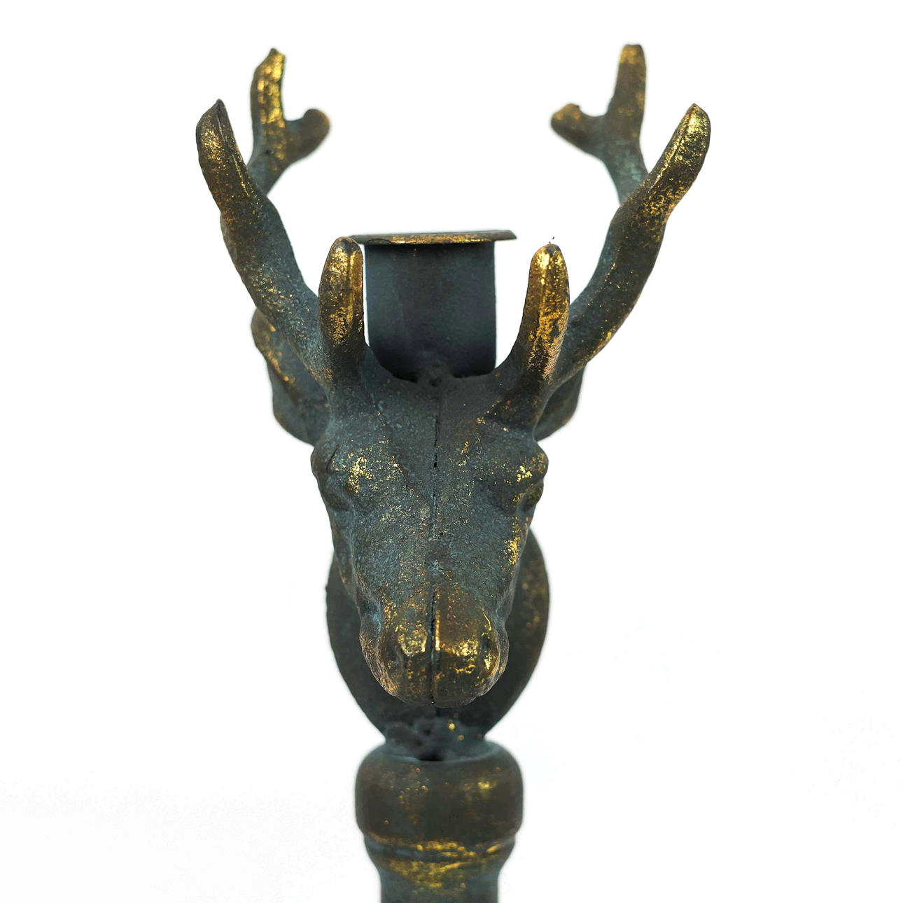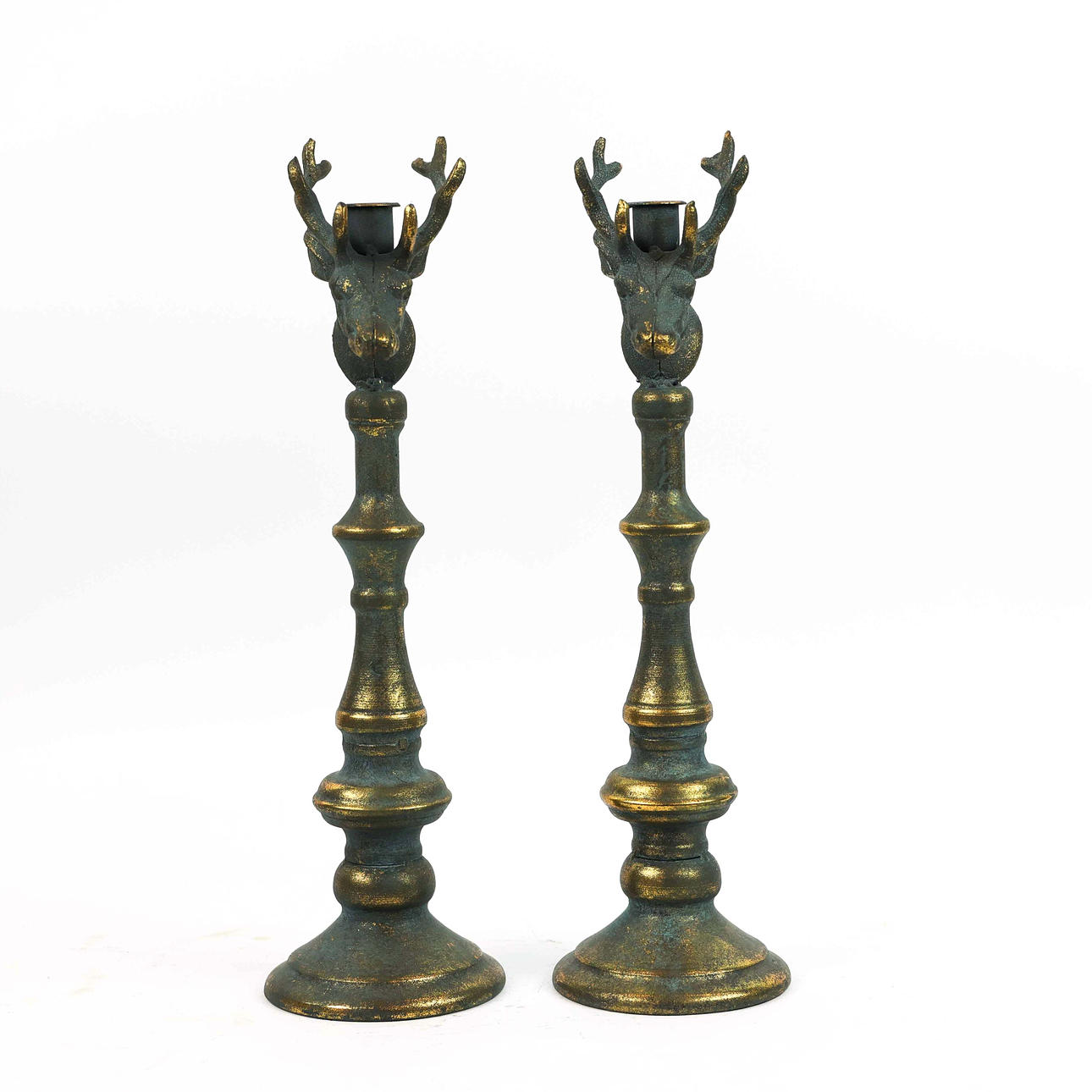 KERZENSTÄNDER, EIN PAAR, MIT HIRSCHKOPF-DETAIL.