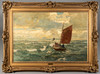 Andreas Dirks (1865-1922), Fischer vor Sylt, Öl auf Leinwand, signiert, ca. 82 x 122 cm, mit Stuckrahmen ca. 115 x 152 cm.
