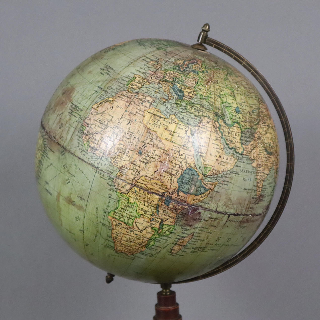 bearbeitet von C. Luther, Columbus-Verlag Berlin-Lichterfelde, auf Holzfuß, Meridianring aus Messing, unterseitig Bleistift-Schriftzug mit Datierung "1912", Höhe: 49,5 cm, Dm. ca. 26 cm.
