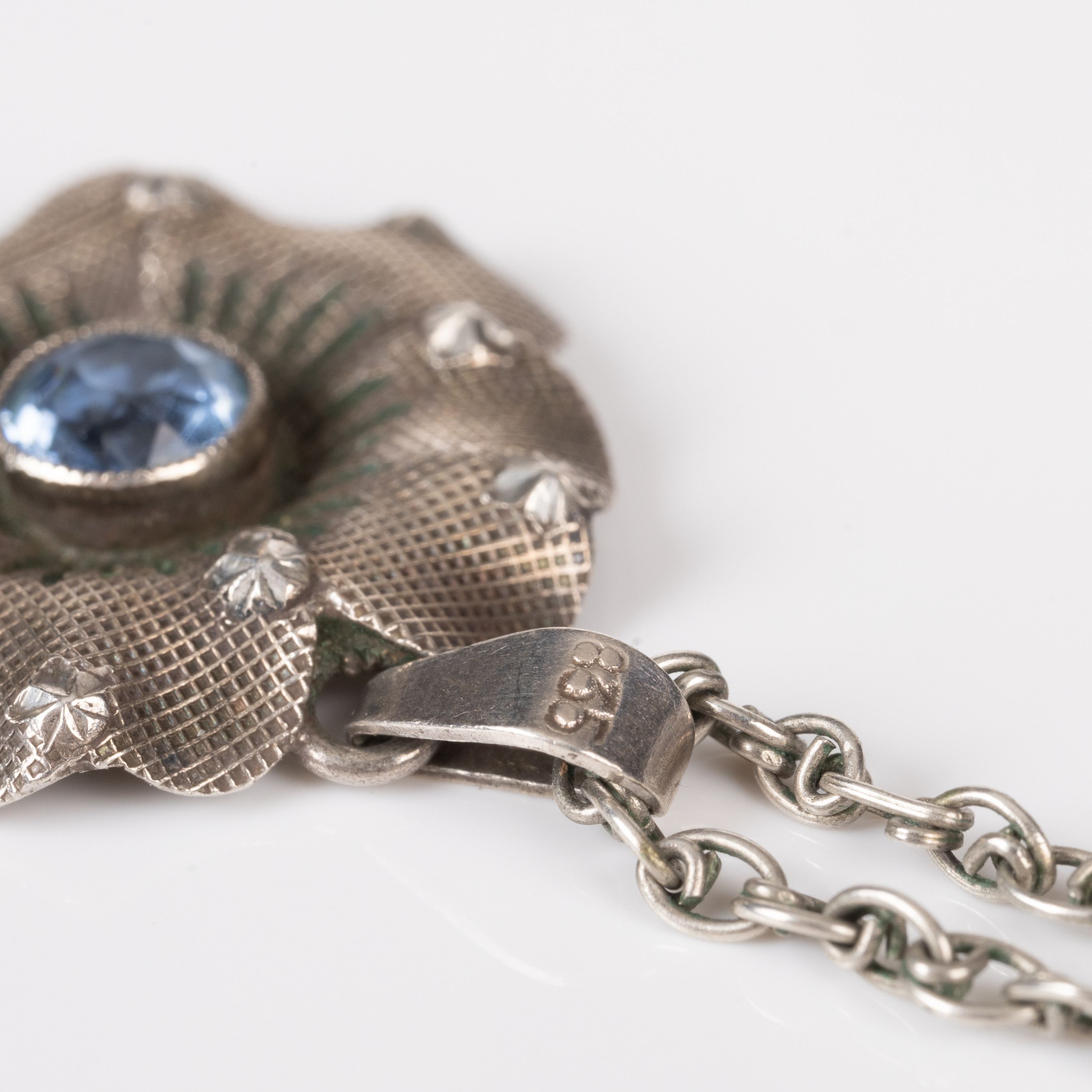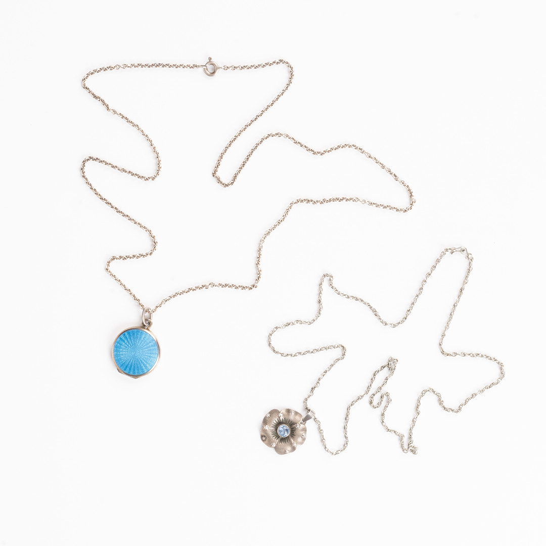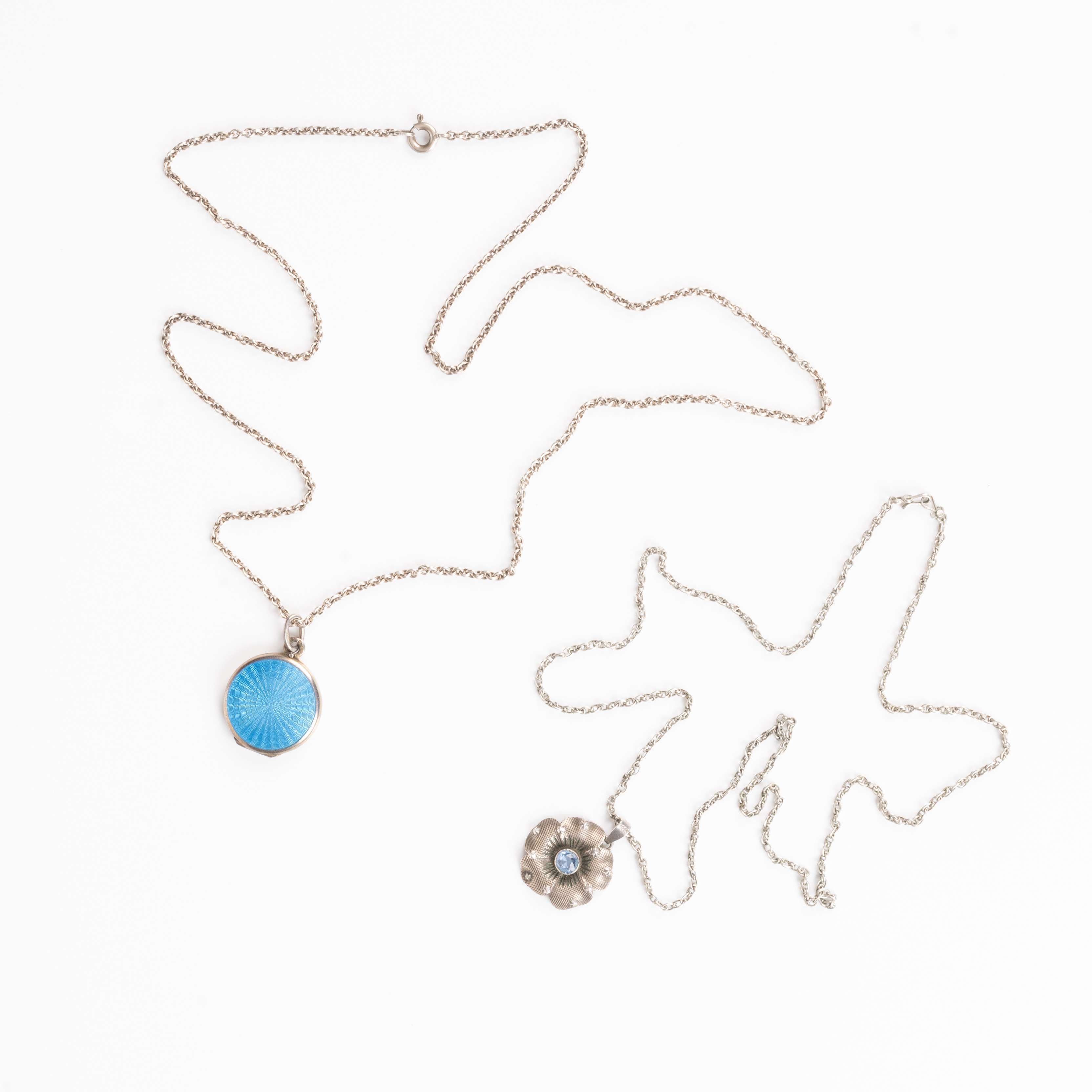 4222447. HALSKETTE, 2 Stück, Sterlingsilber, Emaille, Topas.