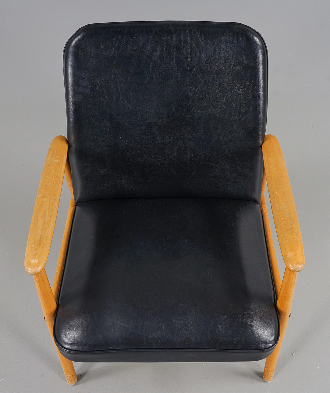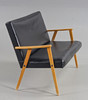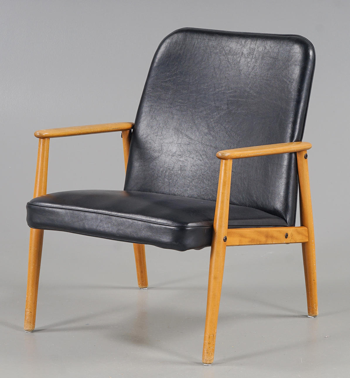 Verschiedene Modelle, Buchenrahmen, mit schwarzem Kunstleder bezogen.