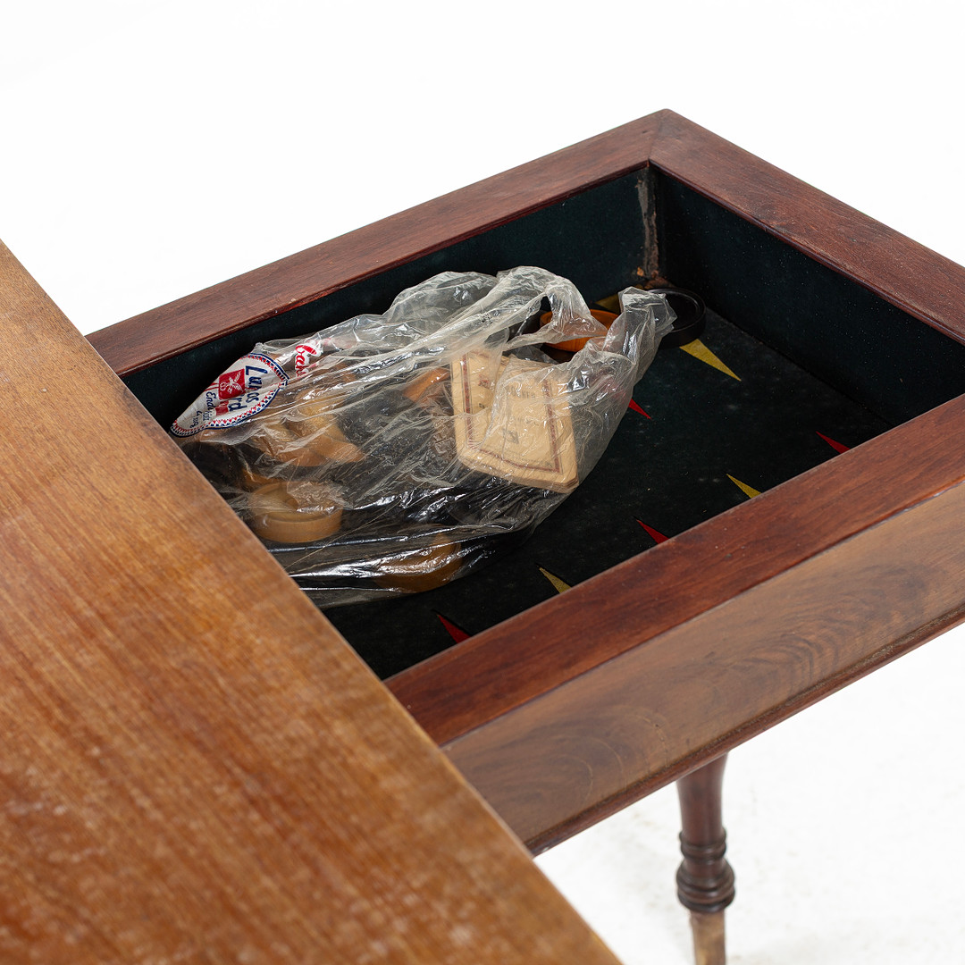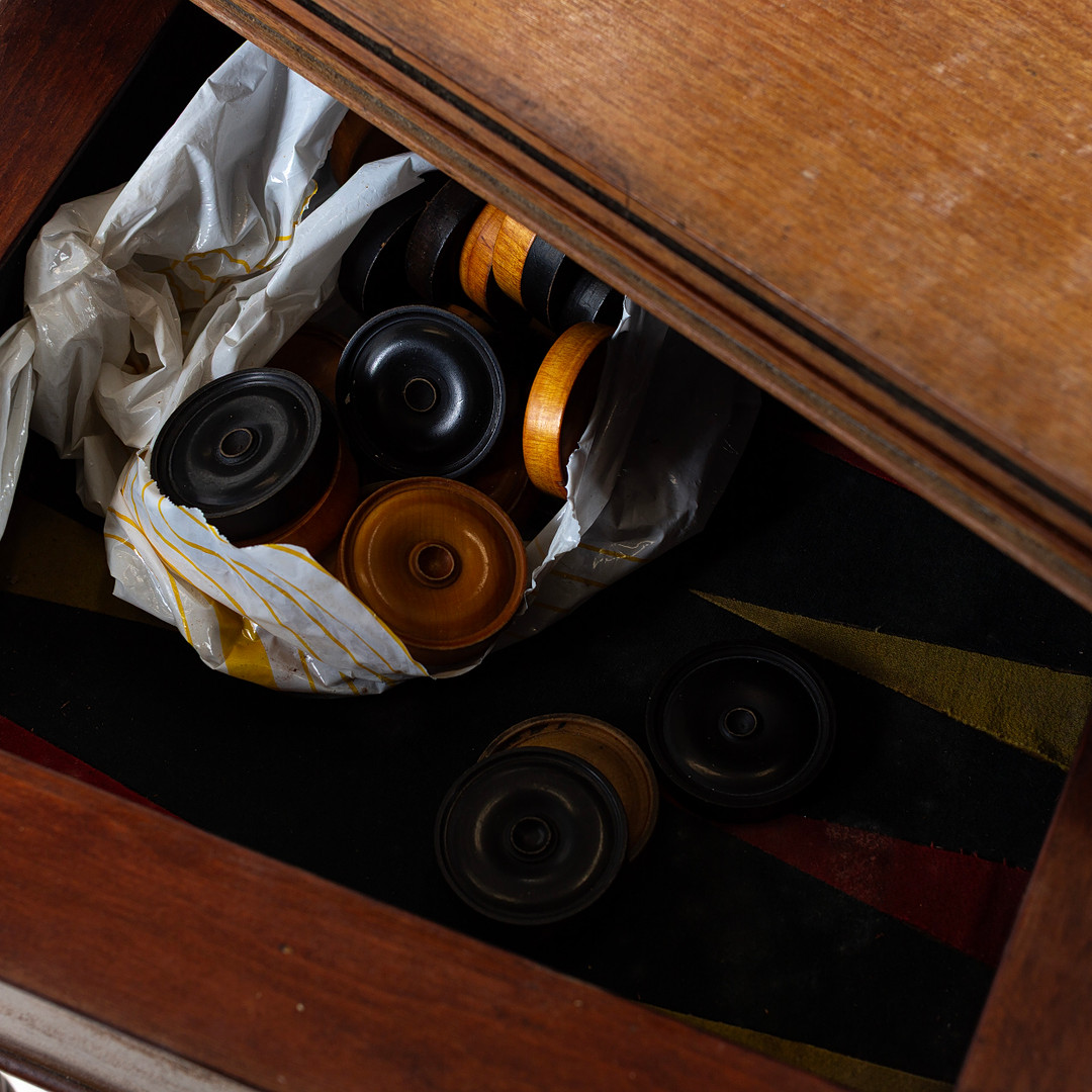 4227467. Ein Backgammon-Tisch, um die Jahrhundertwende 1900.