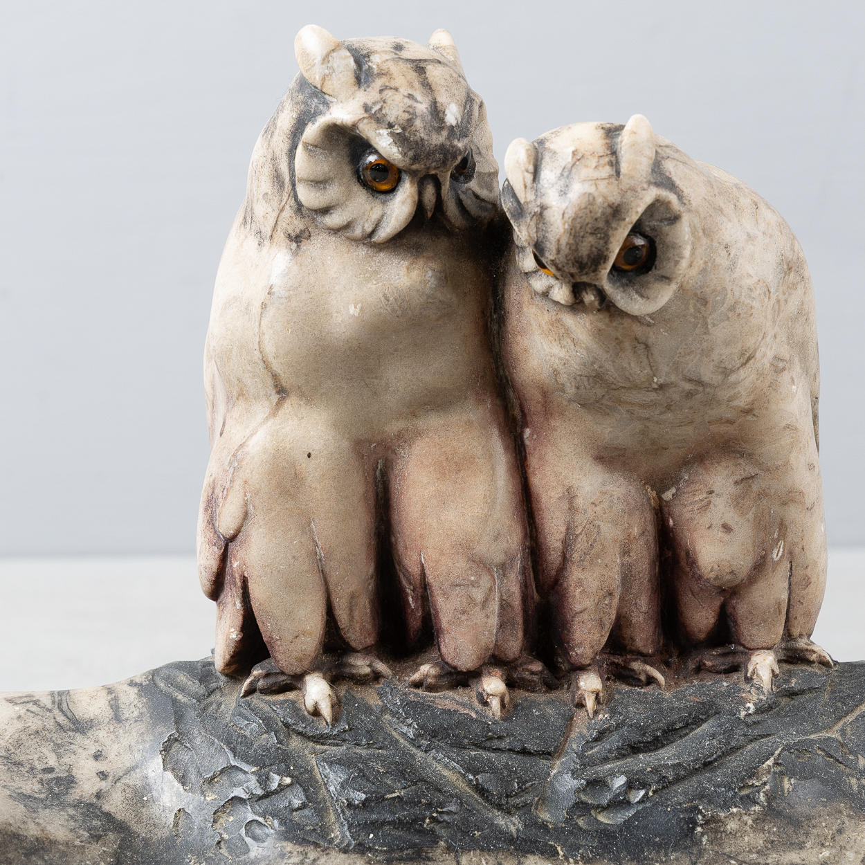 SCHREIBTISCHGARNITUR, Jugendstil, Dekor mit Eulen, Stein.