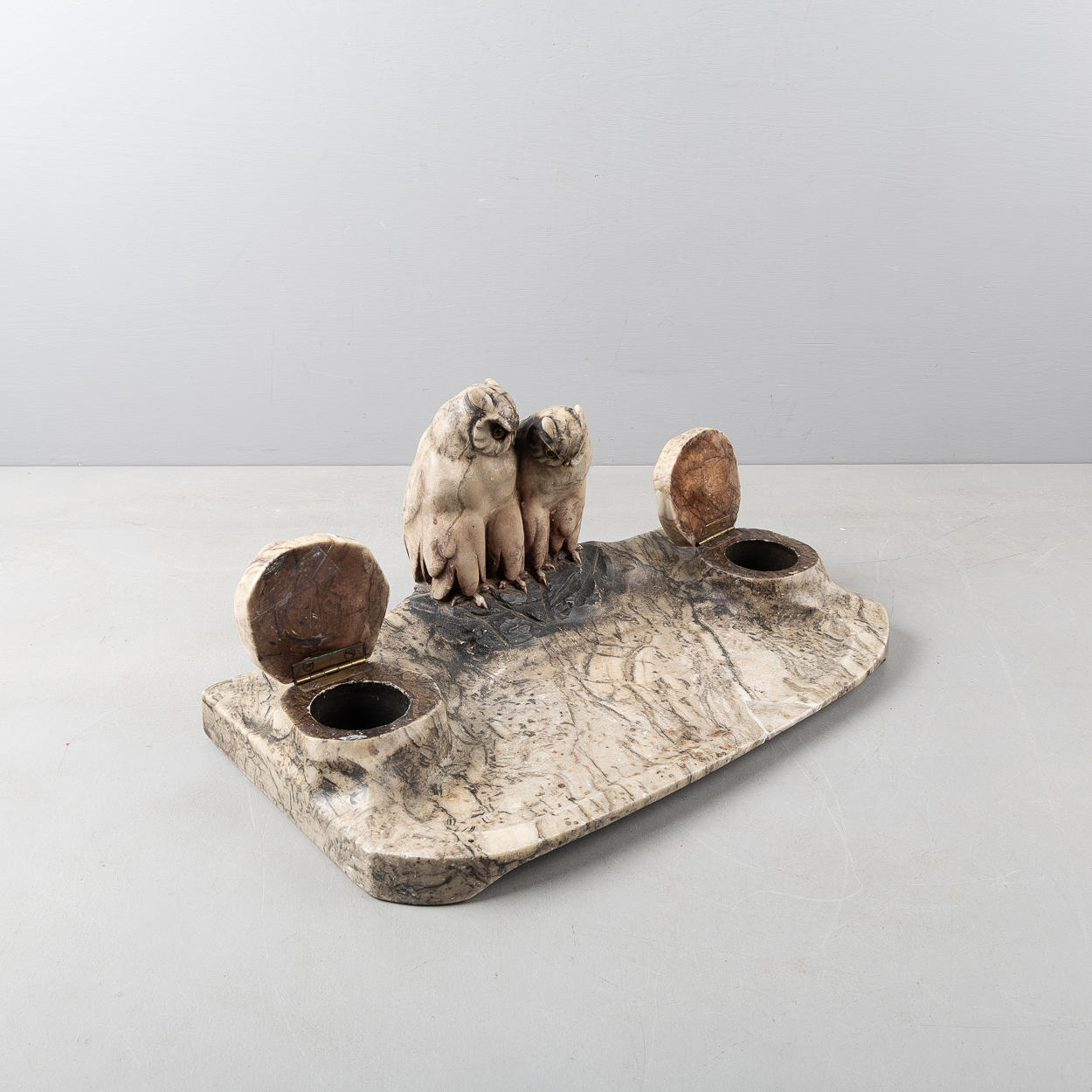 4227918. SCHREIBTISCHGARNITUR, Jugendstil, Dekor mit Eulen, Stein.