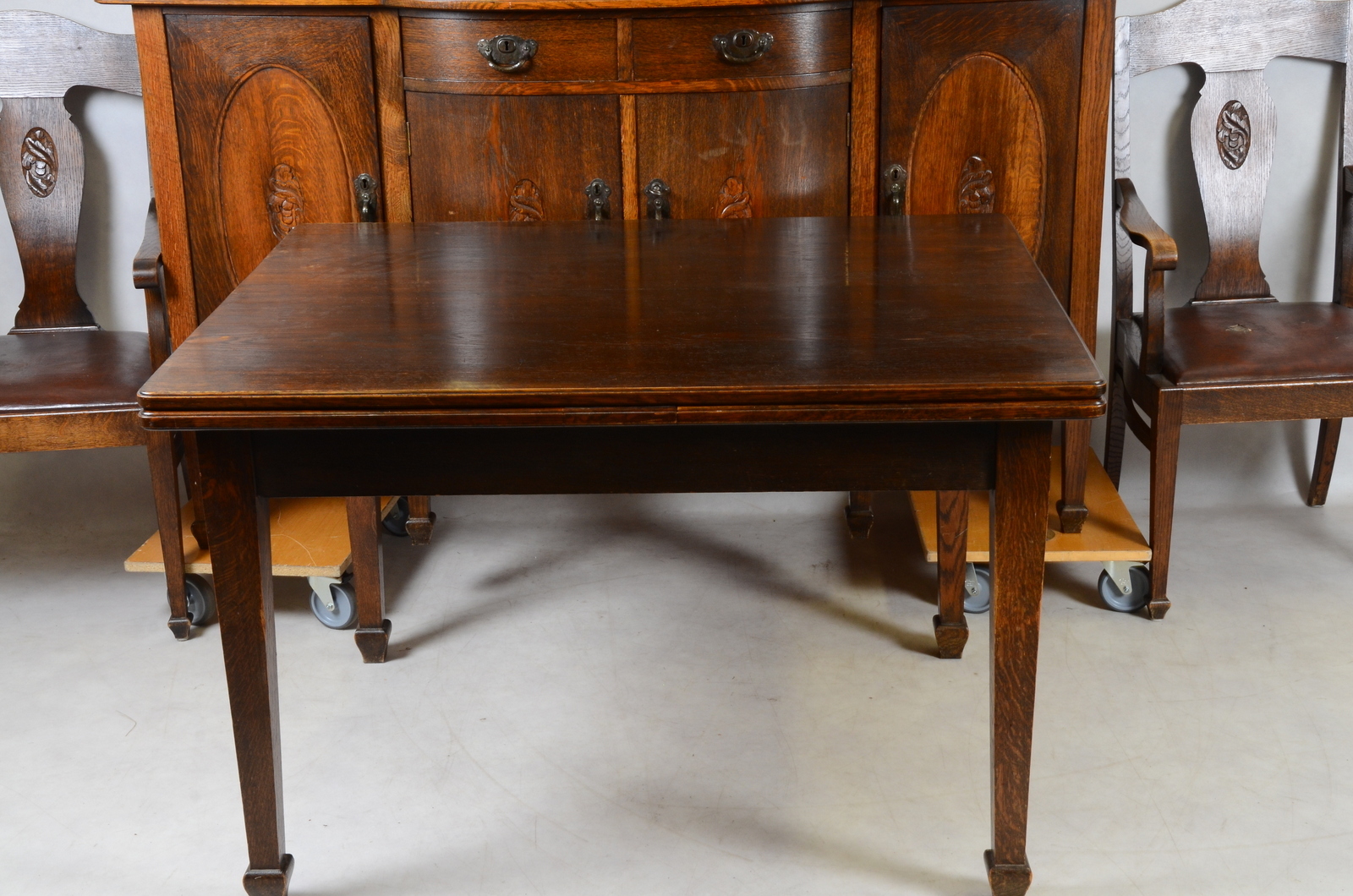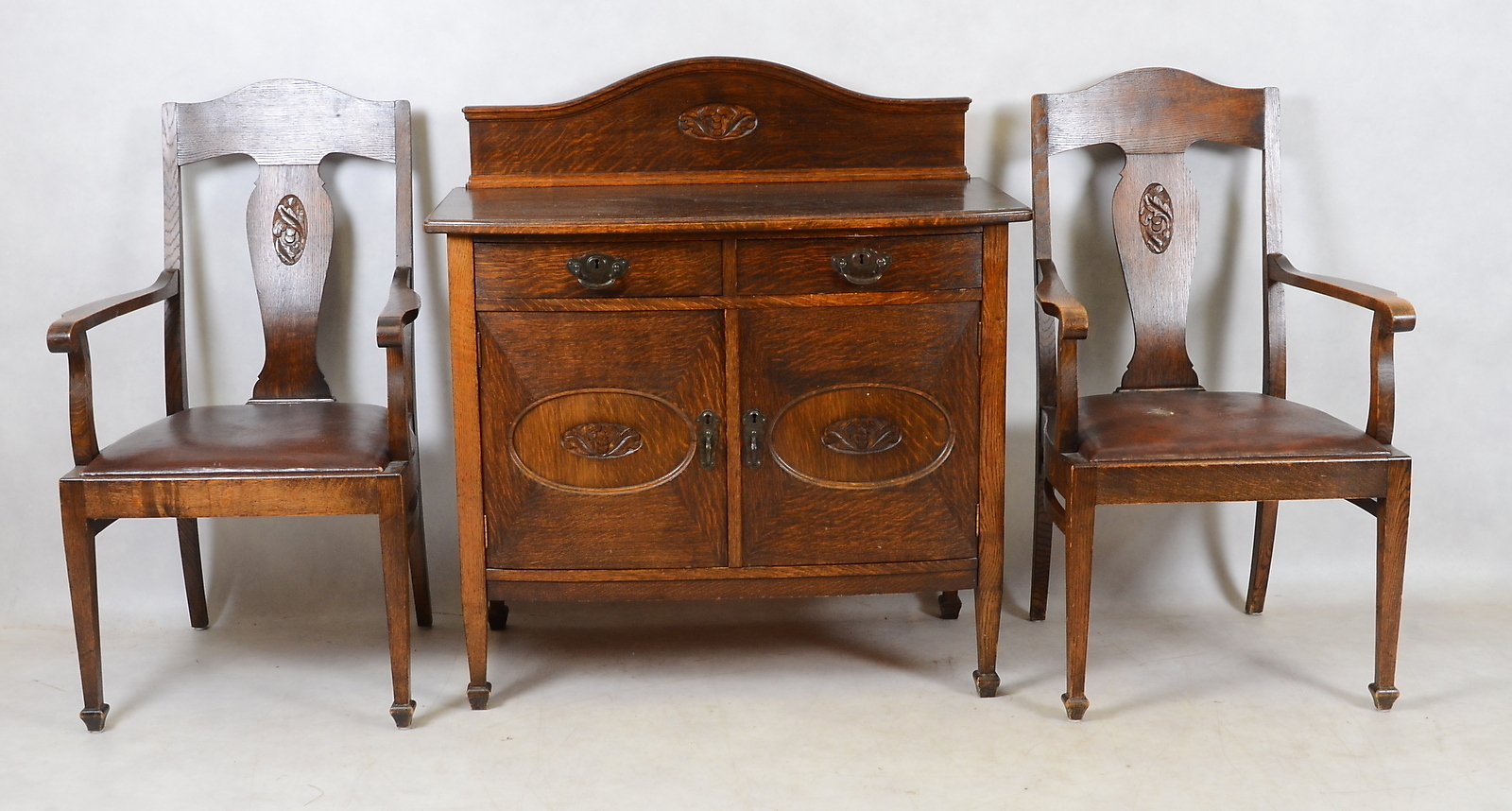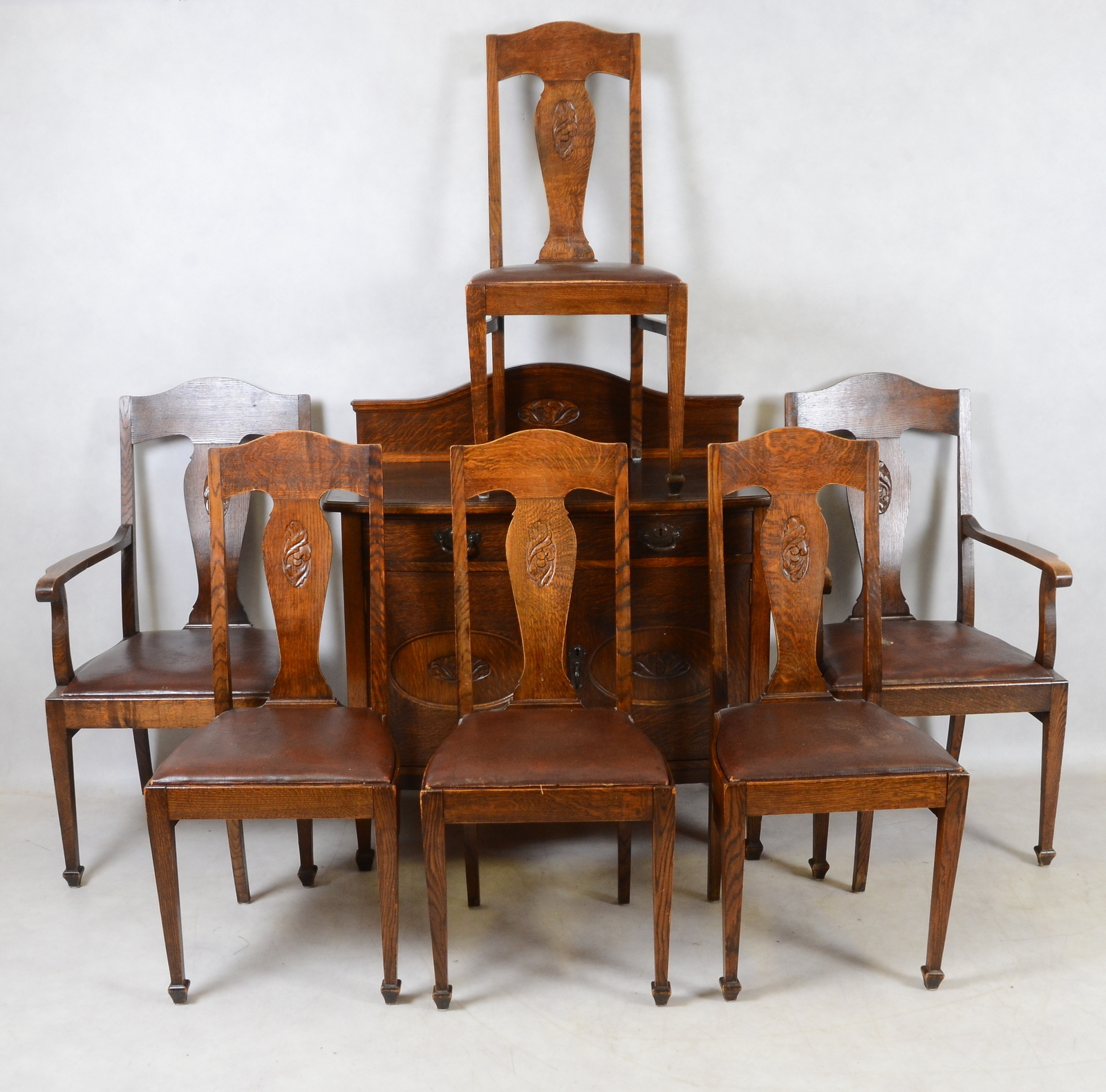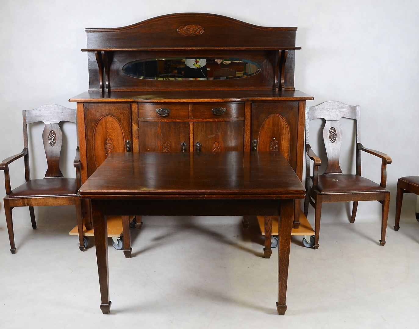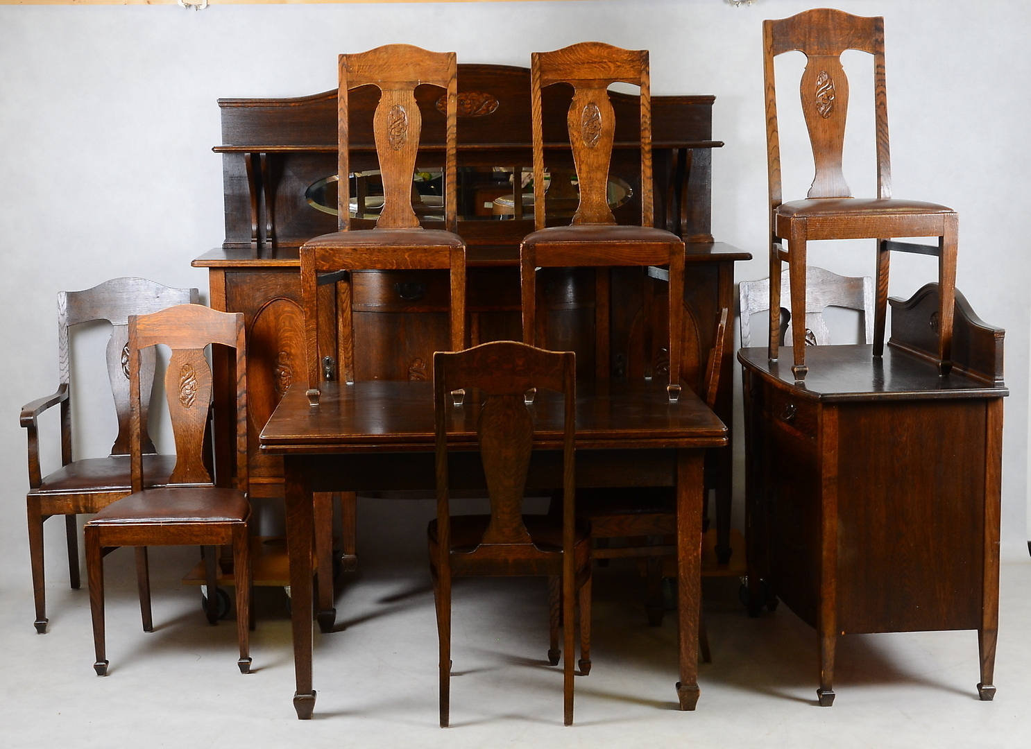 422870. ESSZIMMERMÖBEL, 11-teilig "Der Apfel", Eiche, Jugendstil.