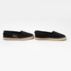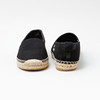 Baumwollleinen und Details aus schwarzem Leder. Sohle aus Jute und Gummi.