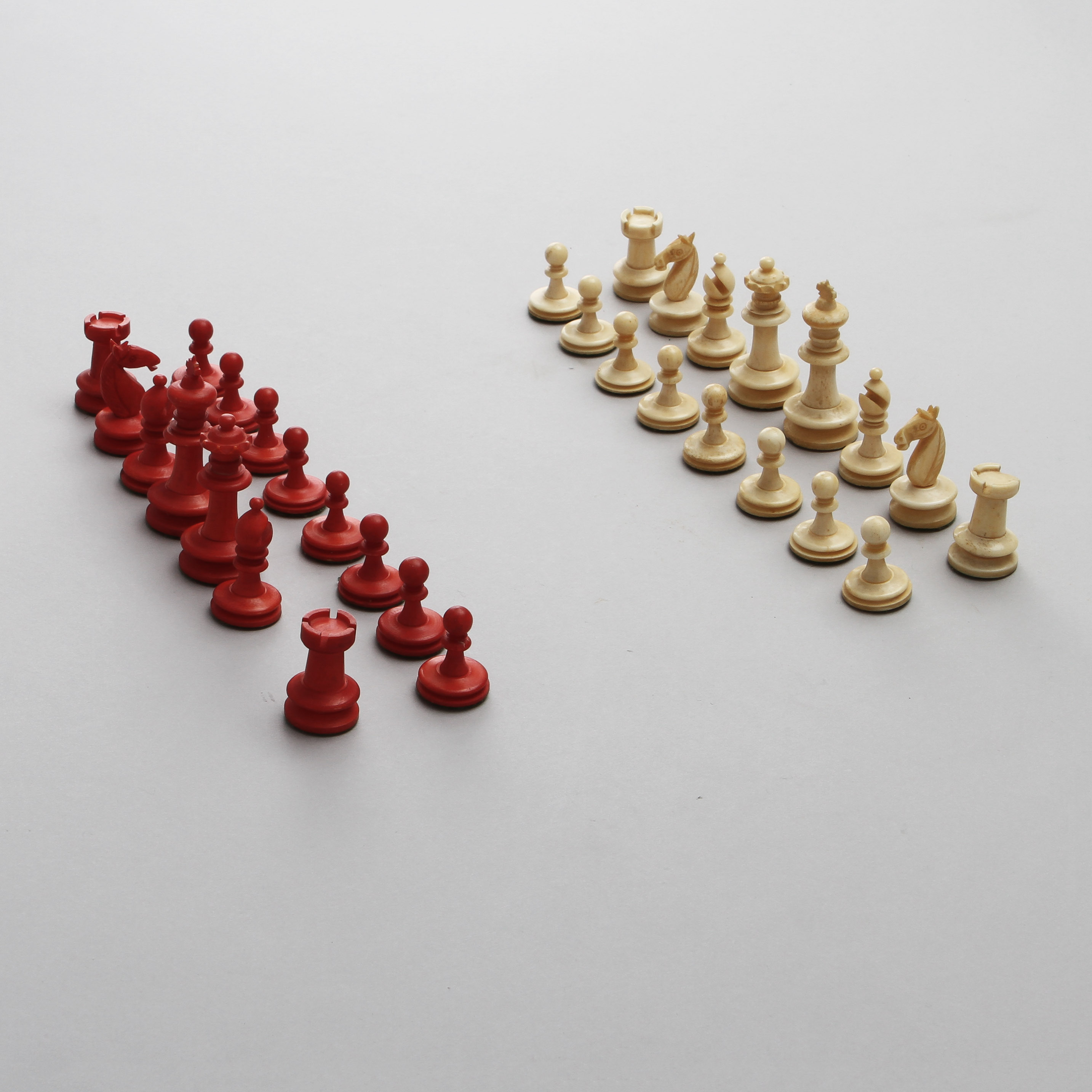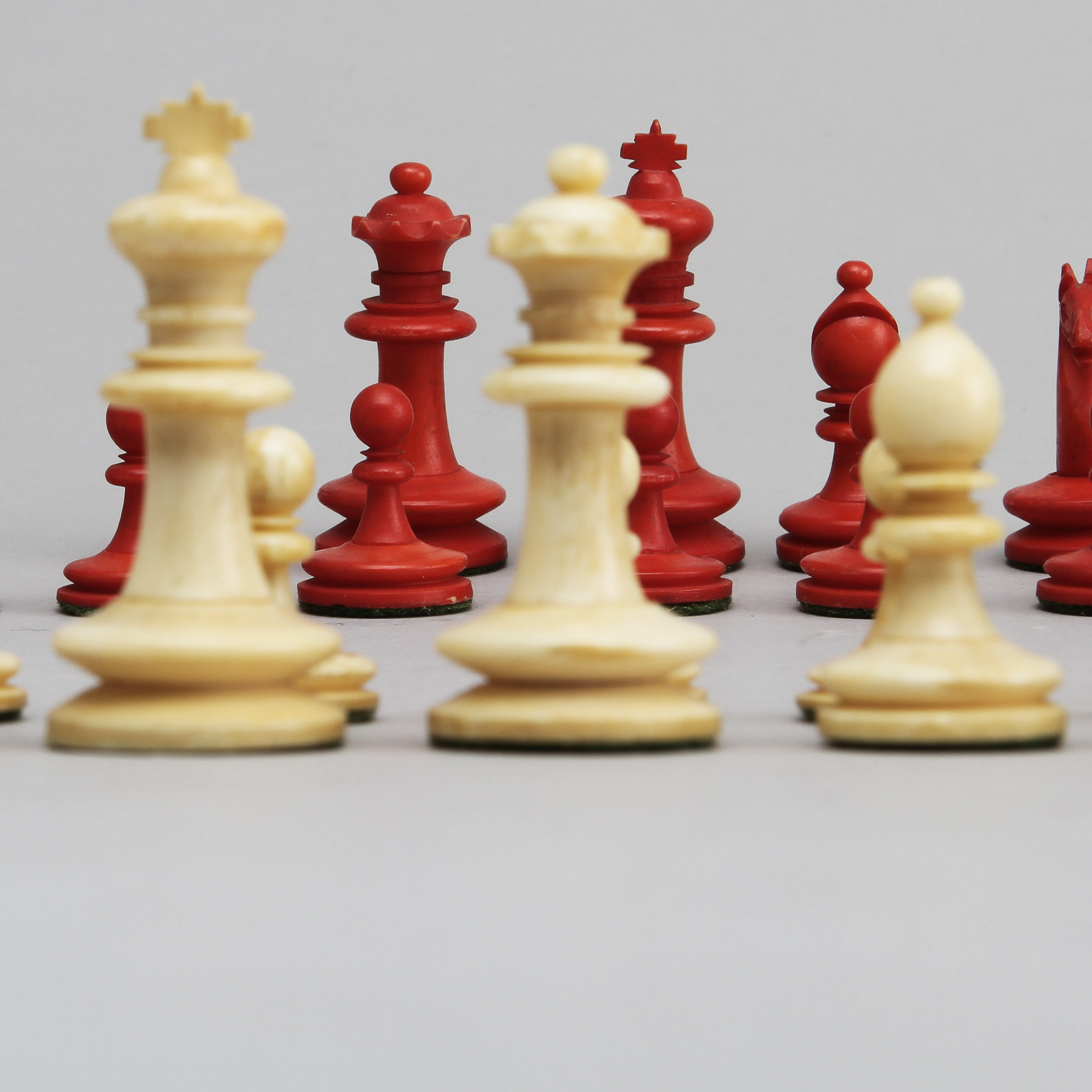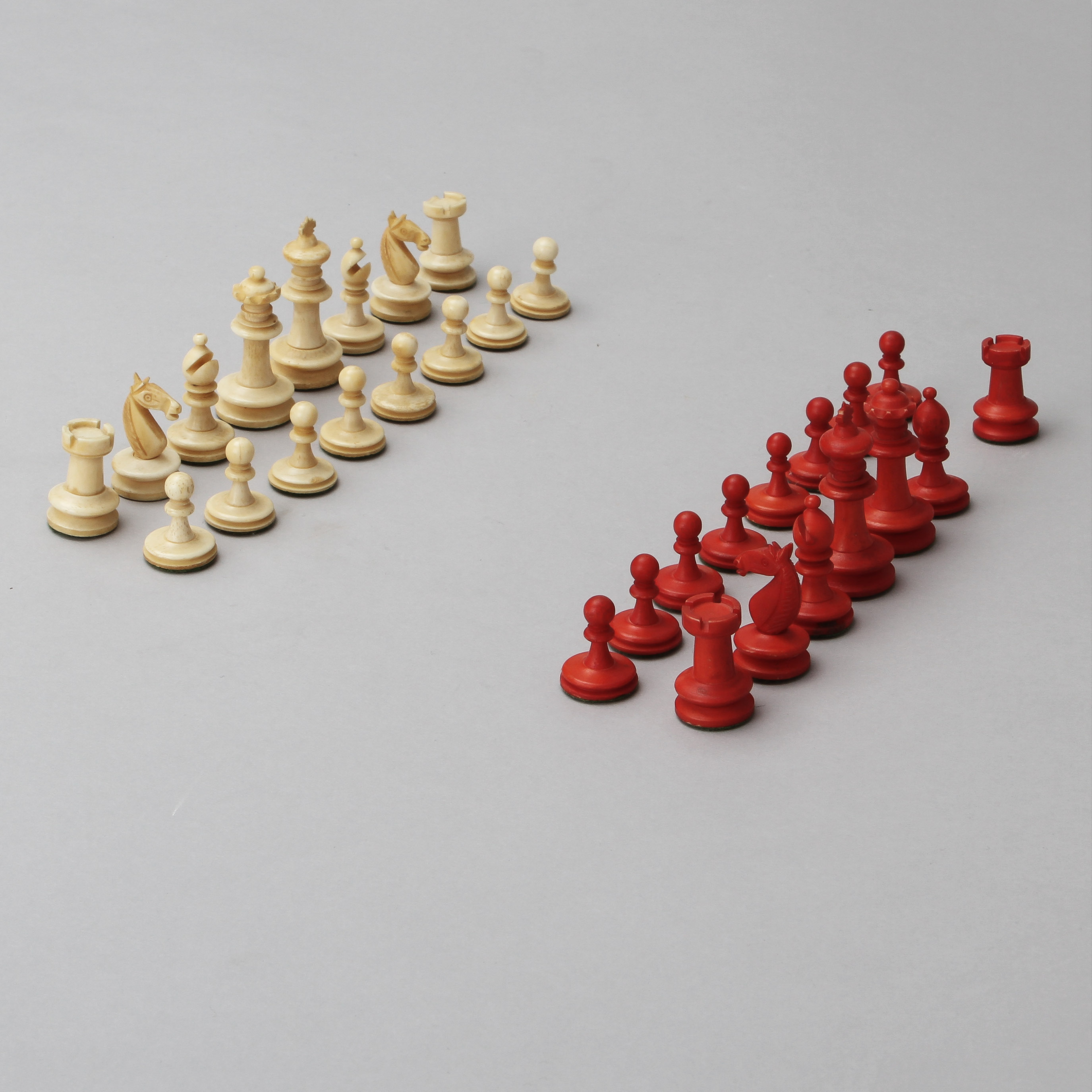 423020. SCHACHFIGUREN, 31 Stück, Knochen, 19. Jh..