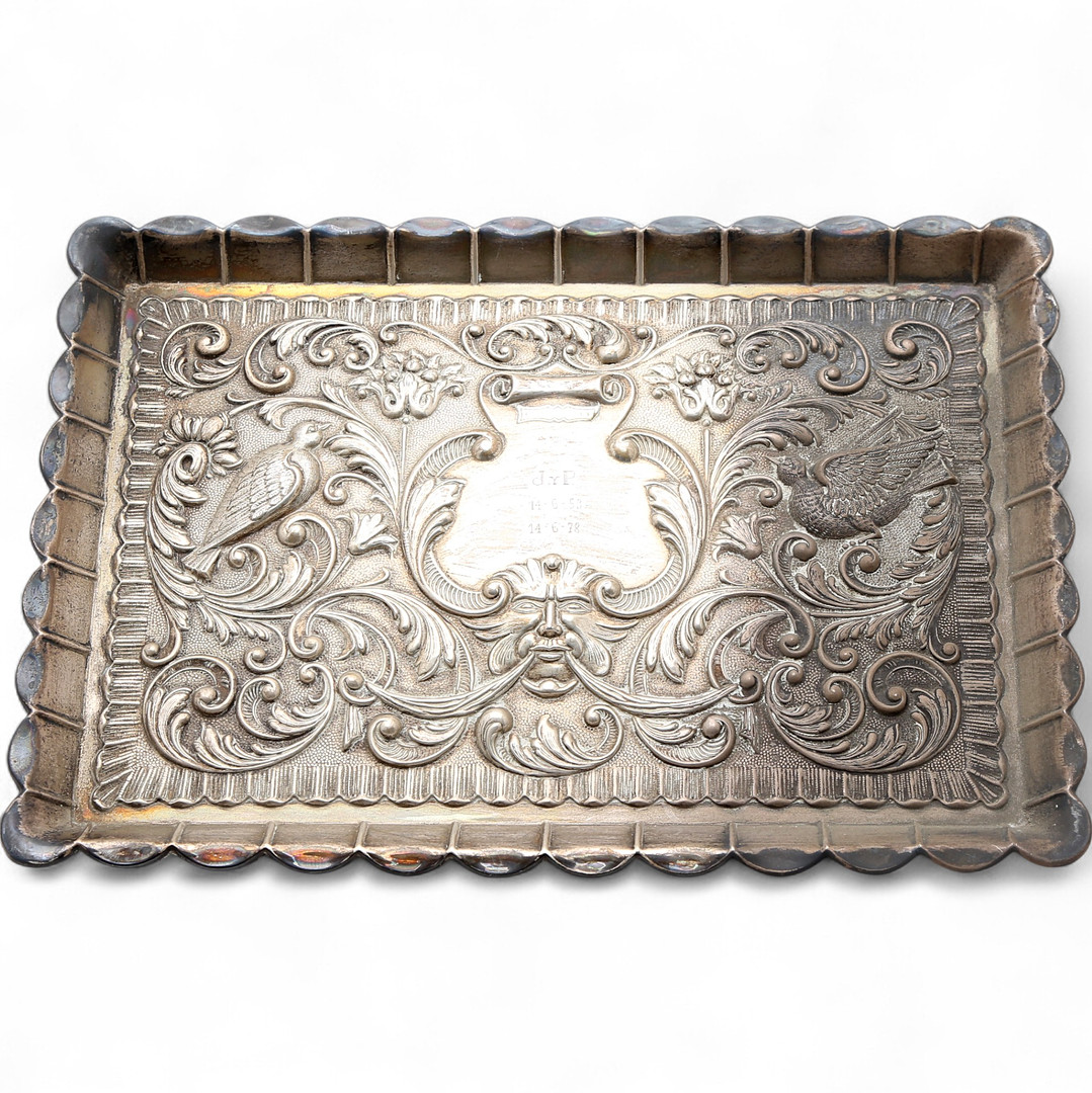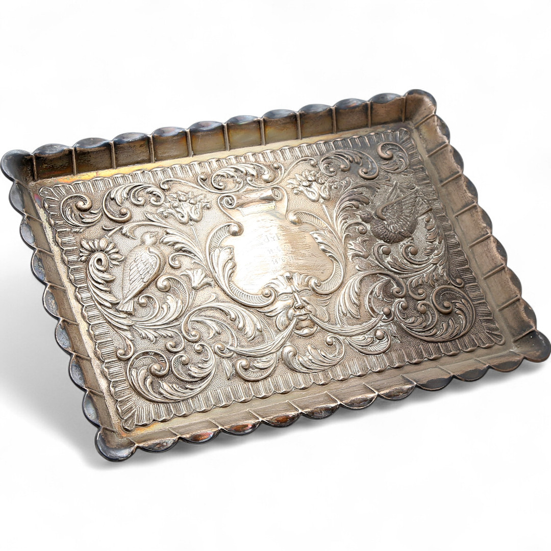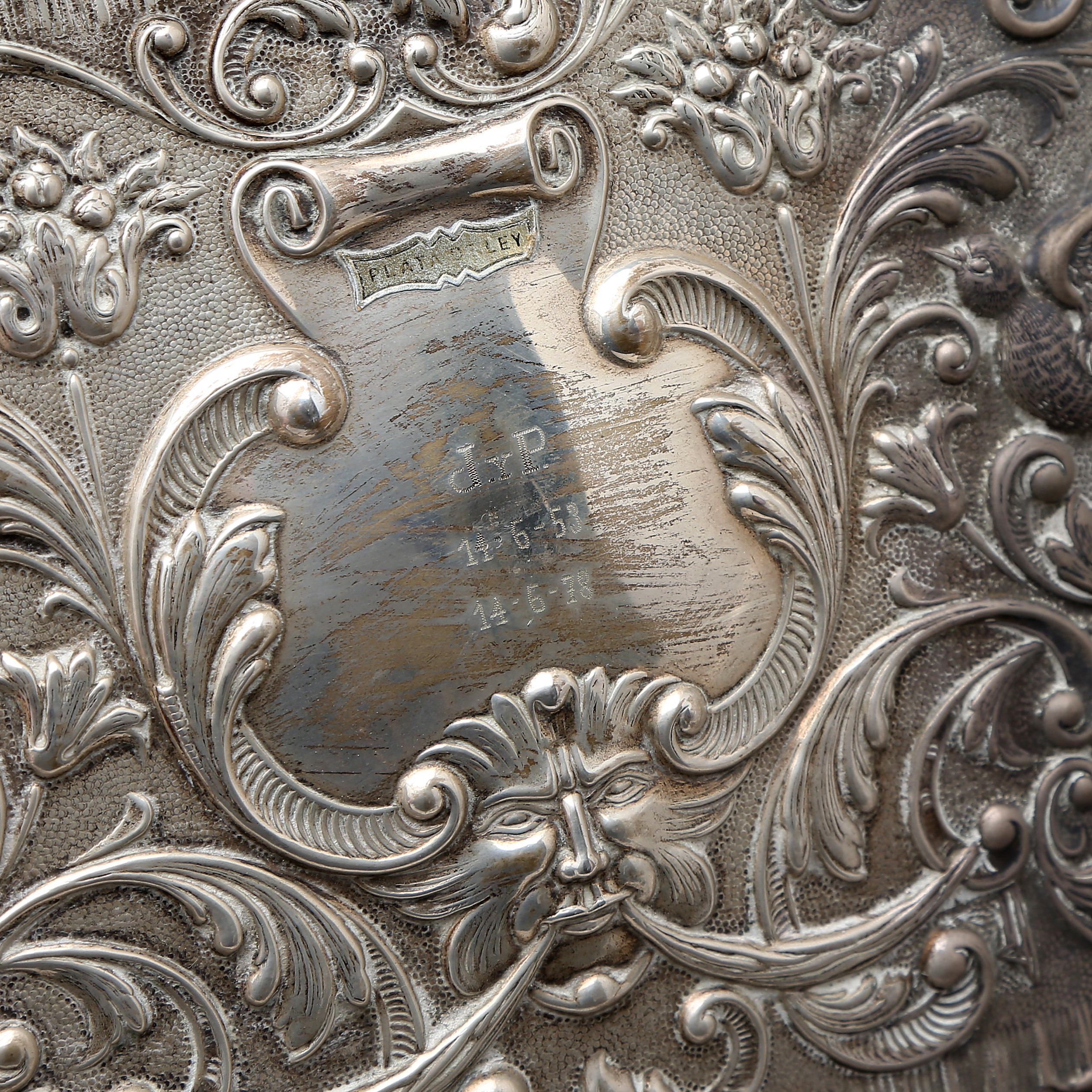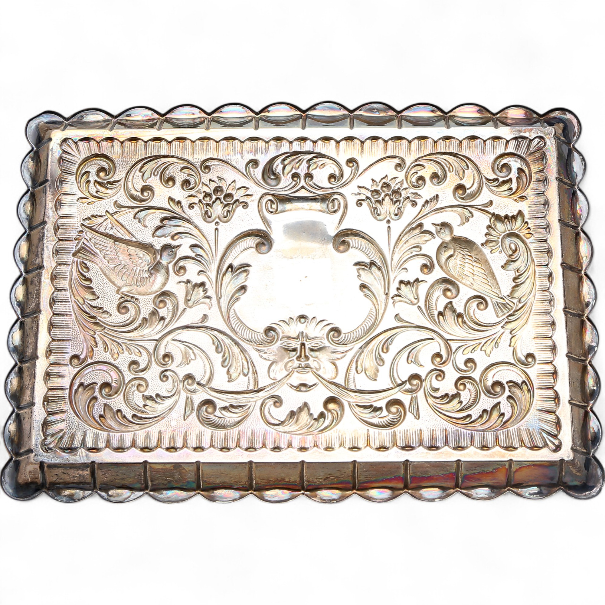 4230818. Silbertablett im Barockstil, aus dem 20. Jahrhundert.