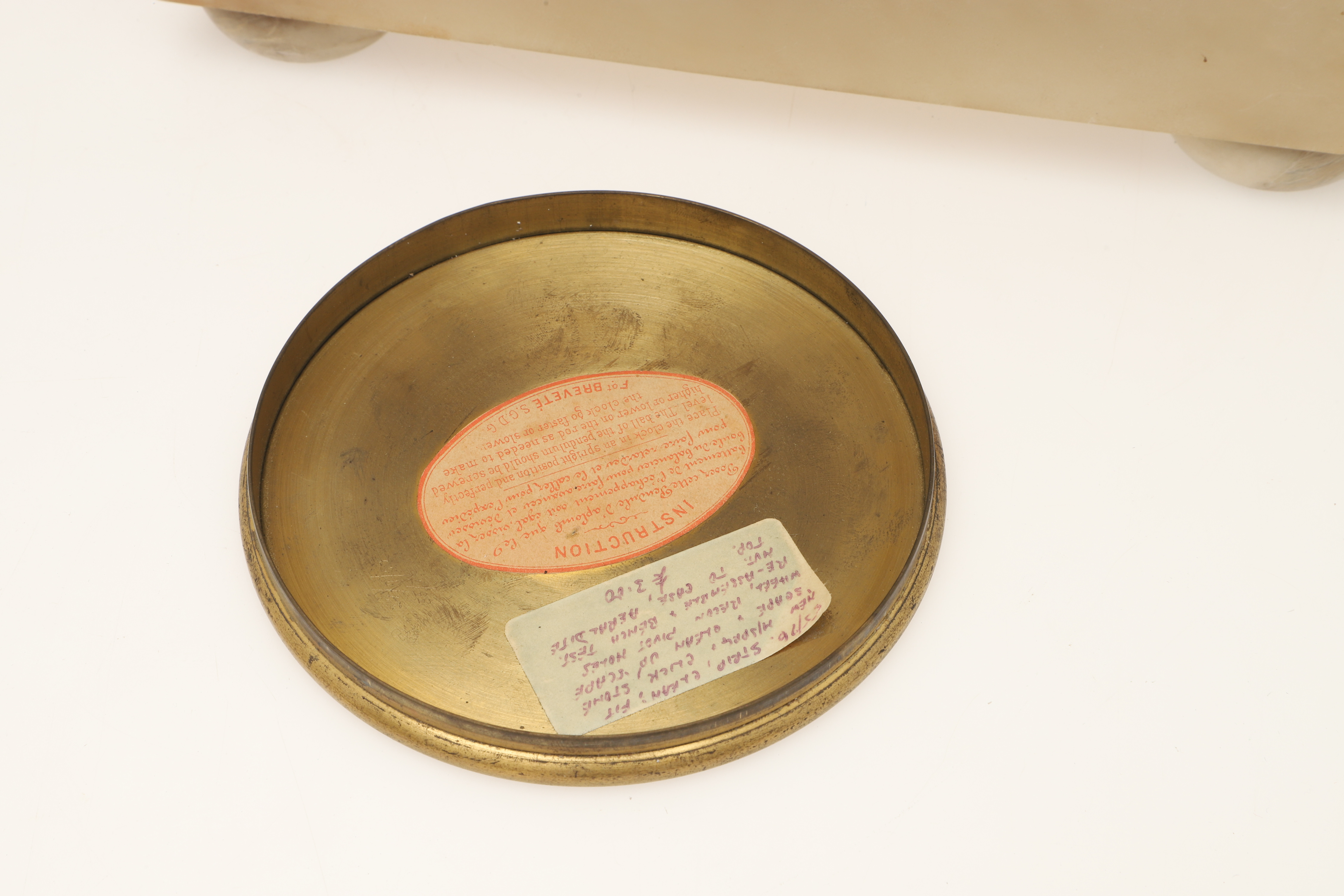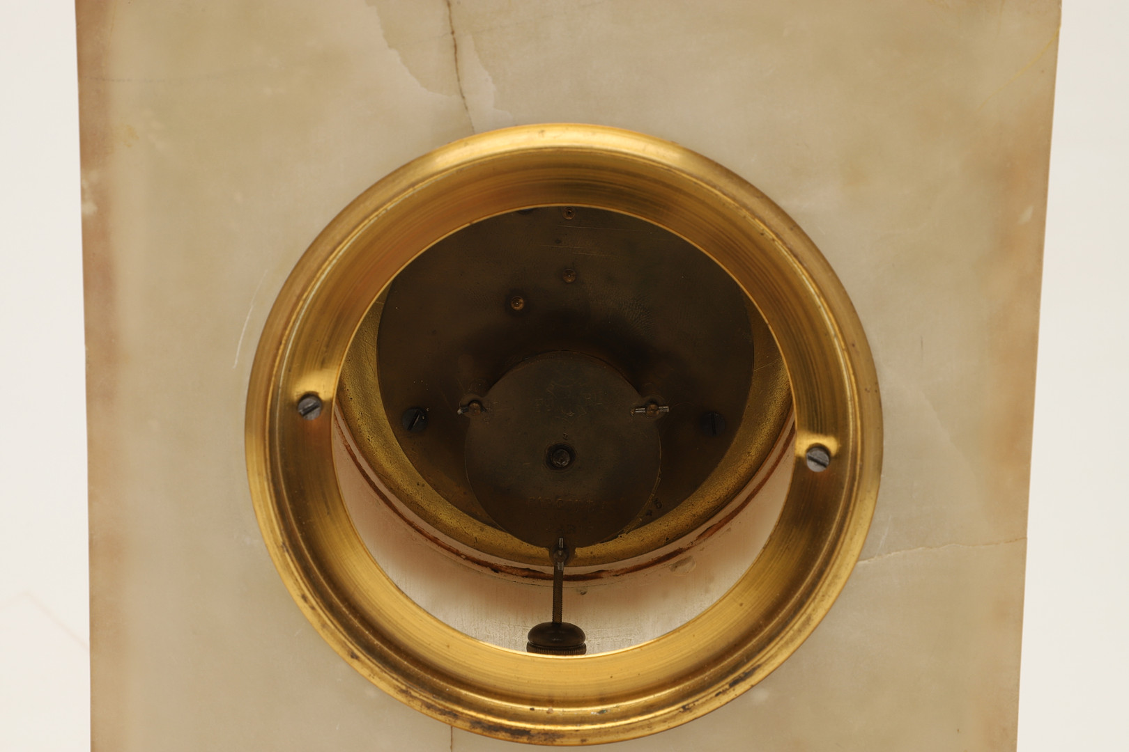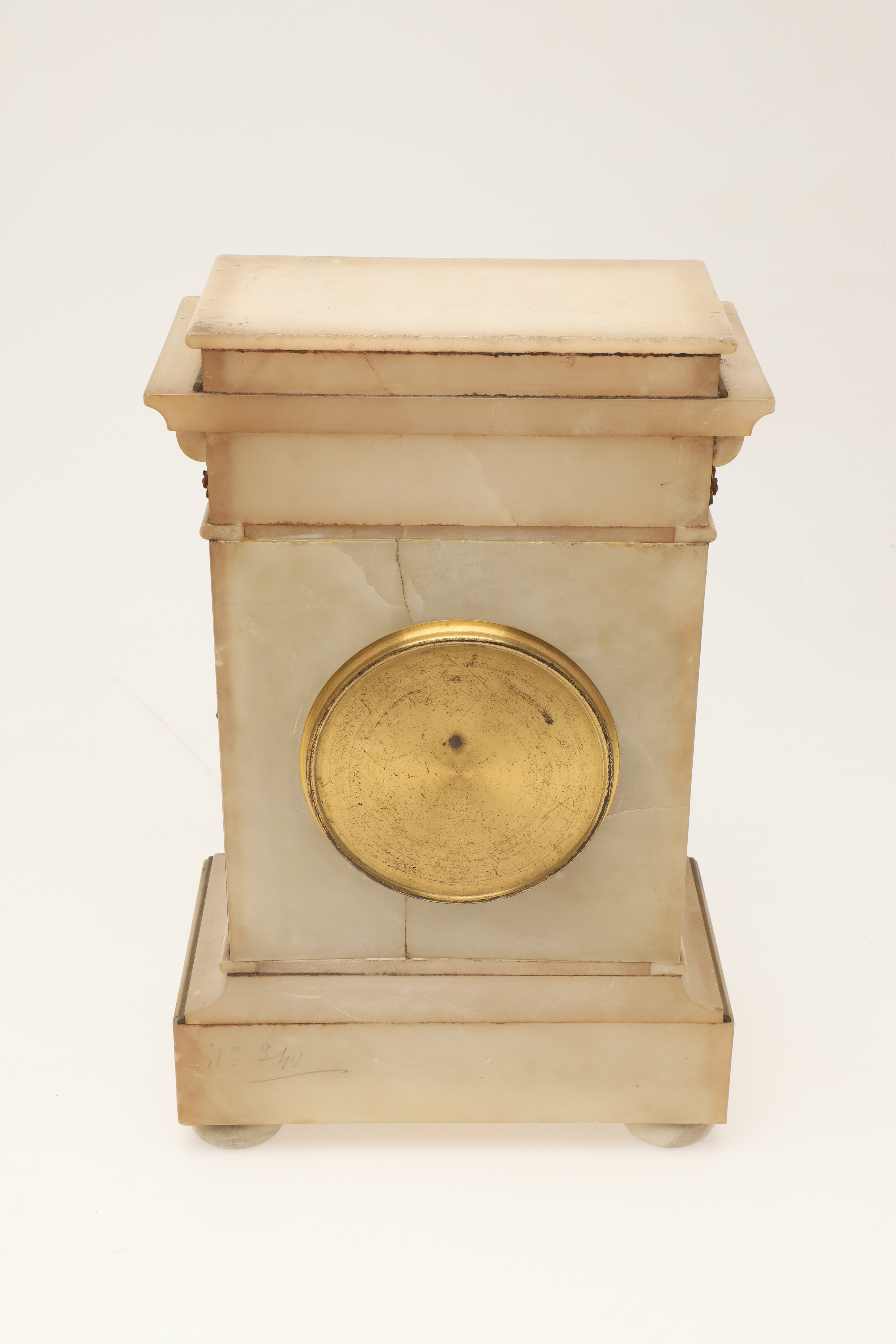 4233961. EINE FRANZÖSISCHE KAMINUHR IM ALABASTERGEHÄUSE.
