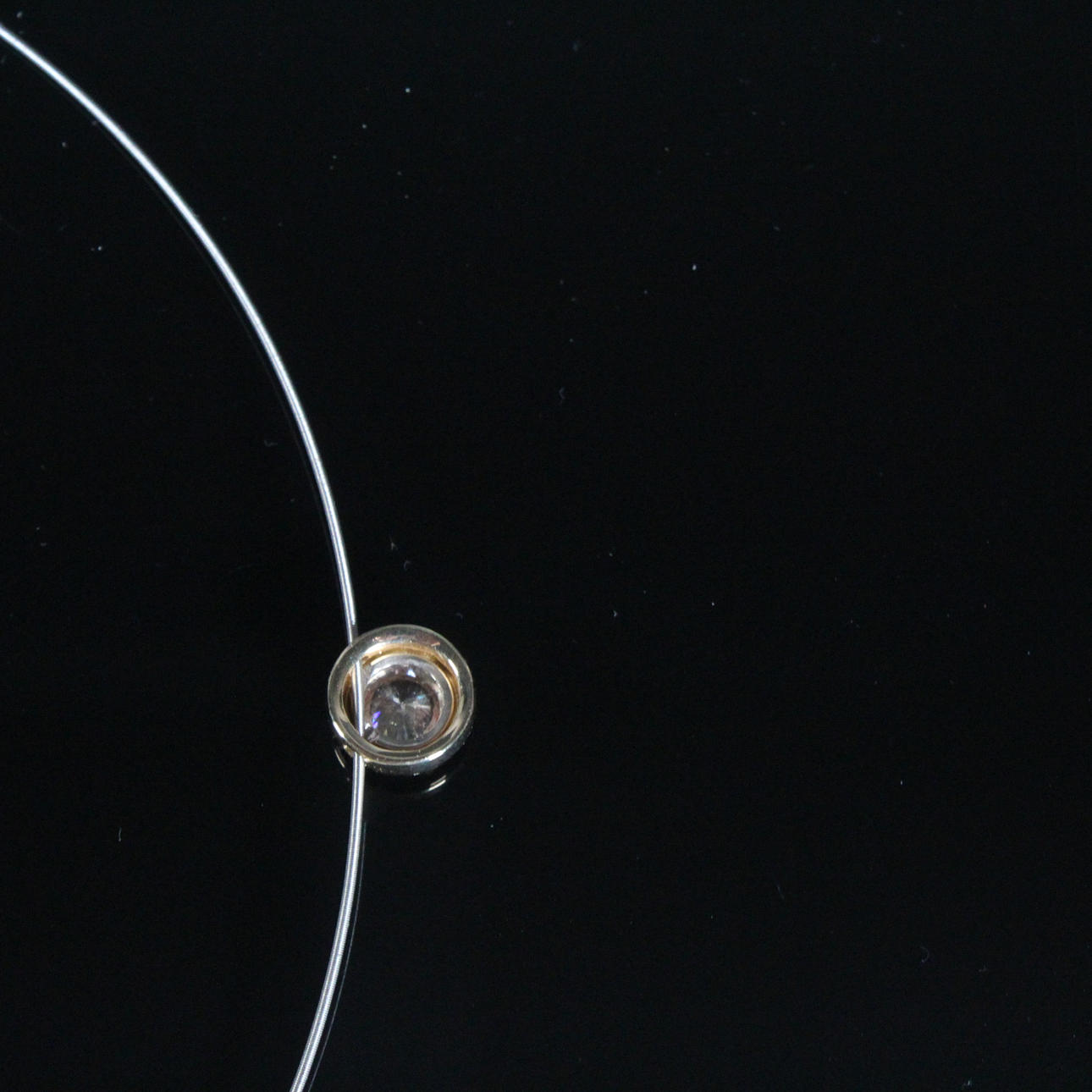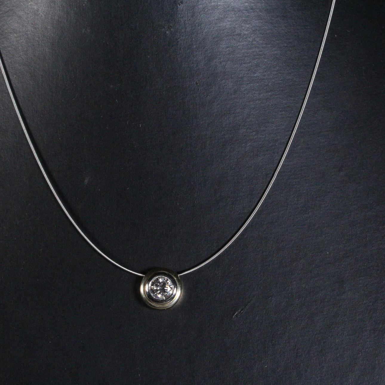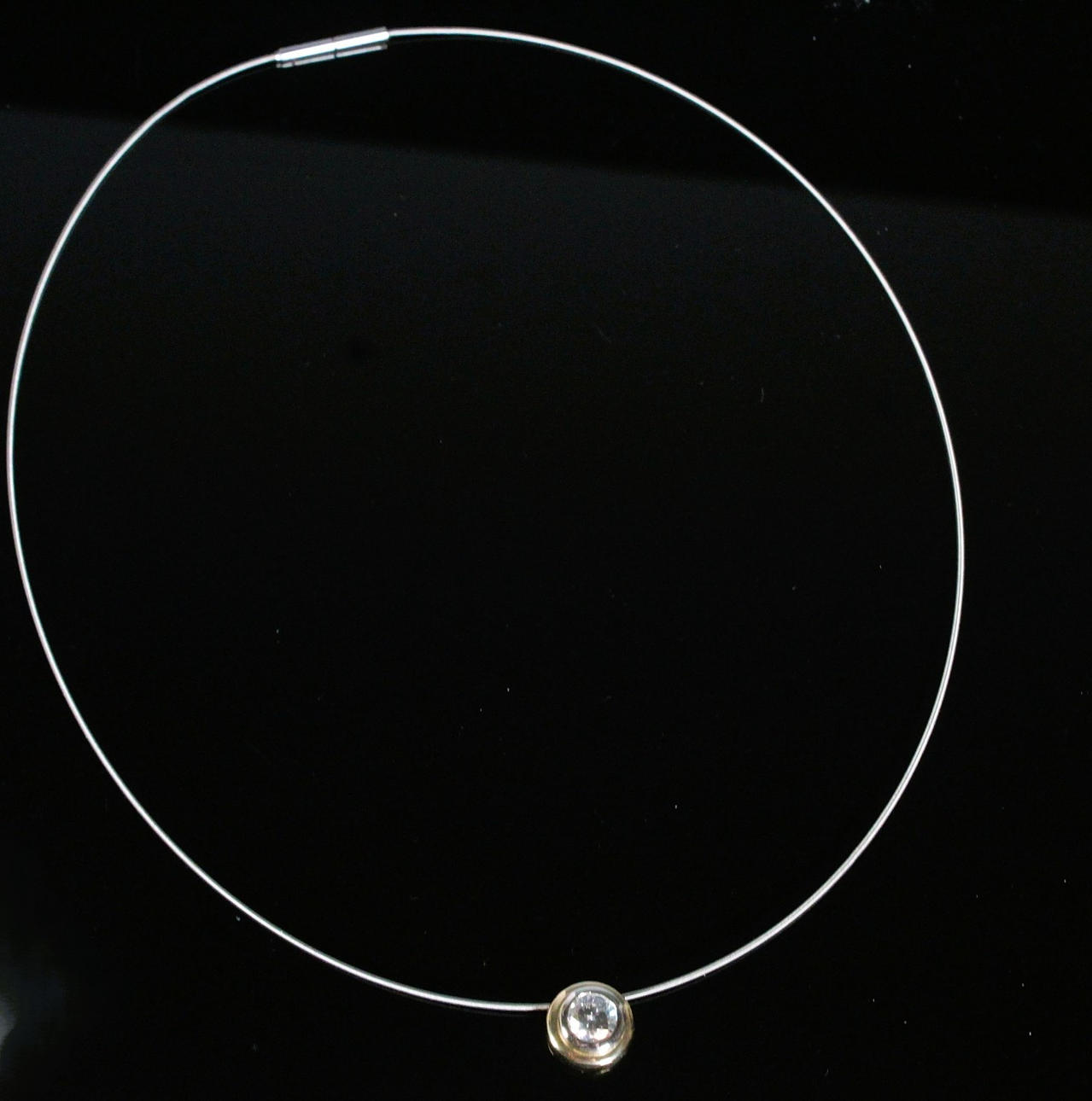 Collier mit Brillantanhänger, 585er, Weißgold/Gelbgold, Omega Kette in 585er Weißgold.Brillant, 1,01 ct, vs1. Farbe: Leicht getöntes Weiß. Brillant mit Expertise.
