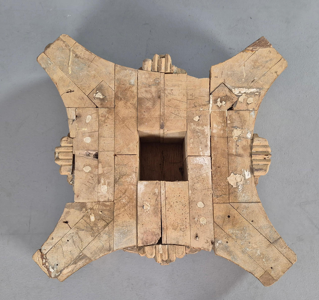 Kiefernholz und vergoldet, erhöht, 22 cm H x 55 cm B.
