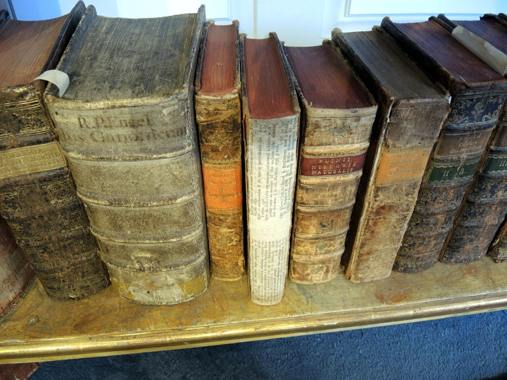 Sammlung antiquarische Bücher, über 50 Stück, verschiedene Länder und Epochen, 17.-19. Jh., unter anderem: C. Plinii Secundi, Naturalis Historia, Tomus Secundus, Lugd. Batau. Roterodami. Apud Hackios, A°1668/ Collegium Universi Juris Canonici, Editio Decima Quarta, Salisburgi 1759 /Der Mensch Christus Jesus, ein Mittler zwischen Gott und den Menschen (...) vorgetragen von P.F. Seraphino Harnischer, Erster Band, Breslau, Johann Friedrich Kord der Ältere, 1769.