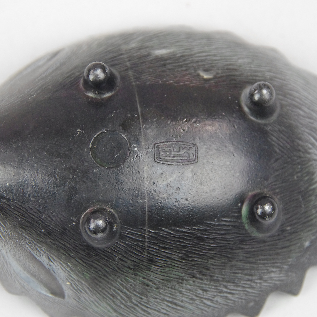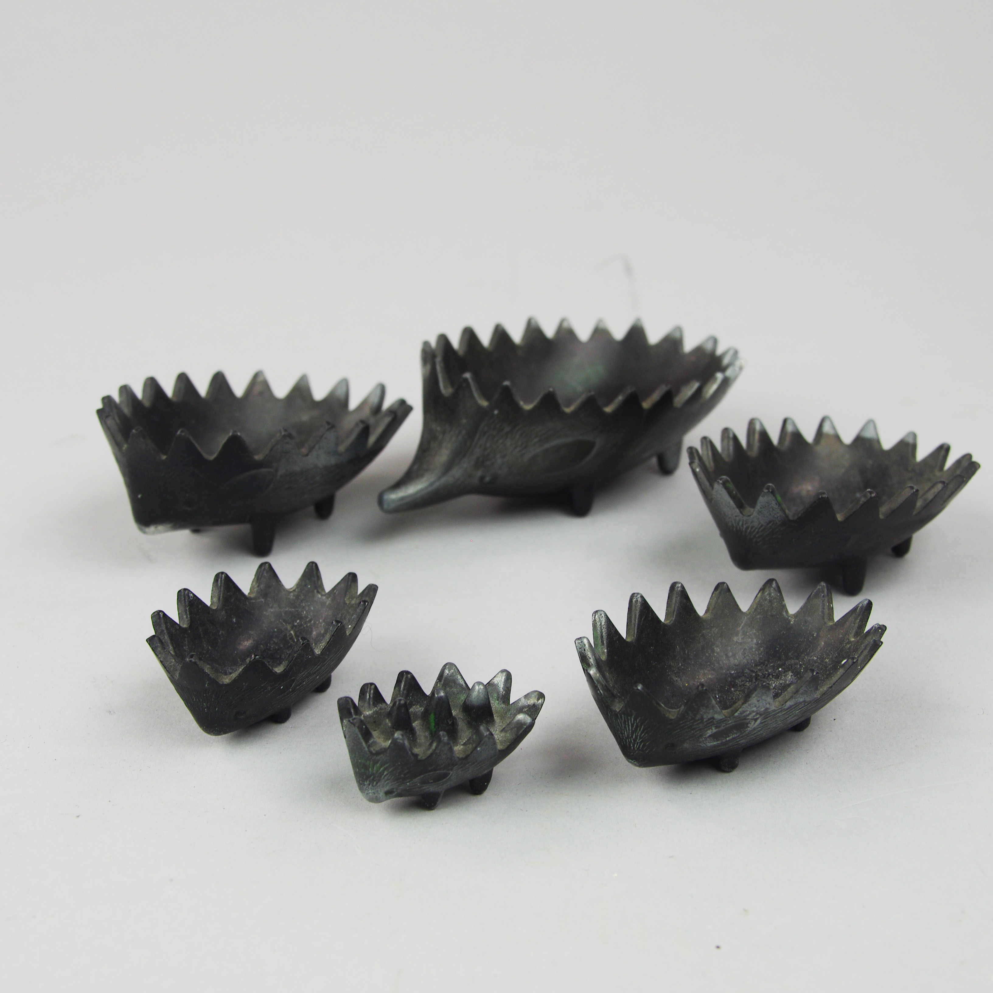 423745. ASCHENBECHER in Form eines Igels, 6-teilig, geschmiedet.