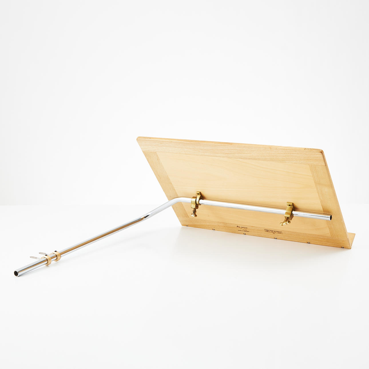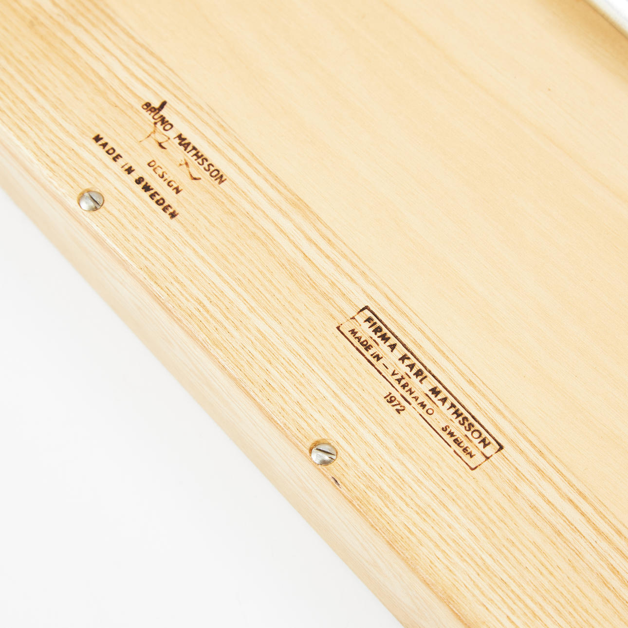 4238192. BRUNO MATHSSON. Ein Lesetisch für einen Sessel, Eiche und Birke, verchromtes Metallgestell, Firma Karl Mathsson Värnamo, 1972.