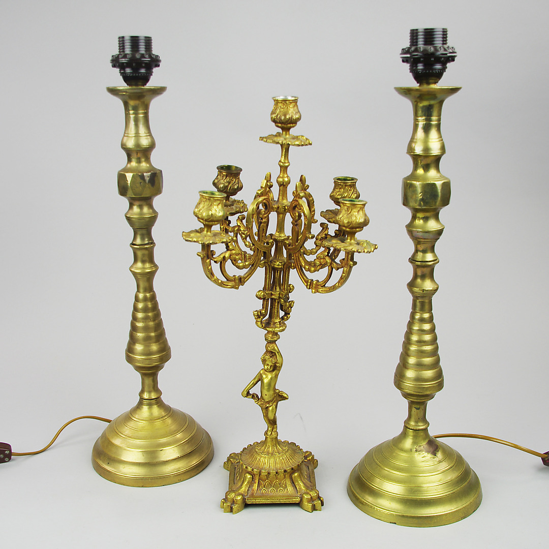 423968. KERZENSTÄNDER / ein paar TISCHLEUCHTER, Messing.