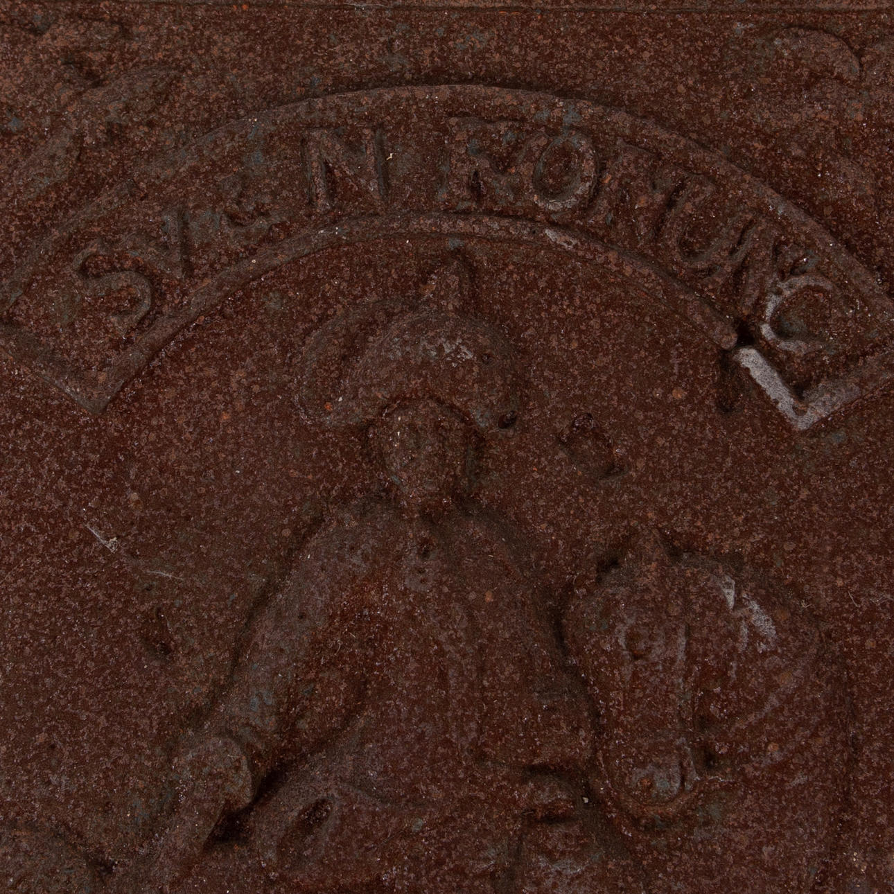 Eine gusseiserne Ofentür, 18./20. Jahrhundert.