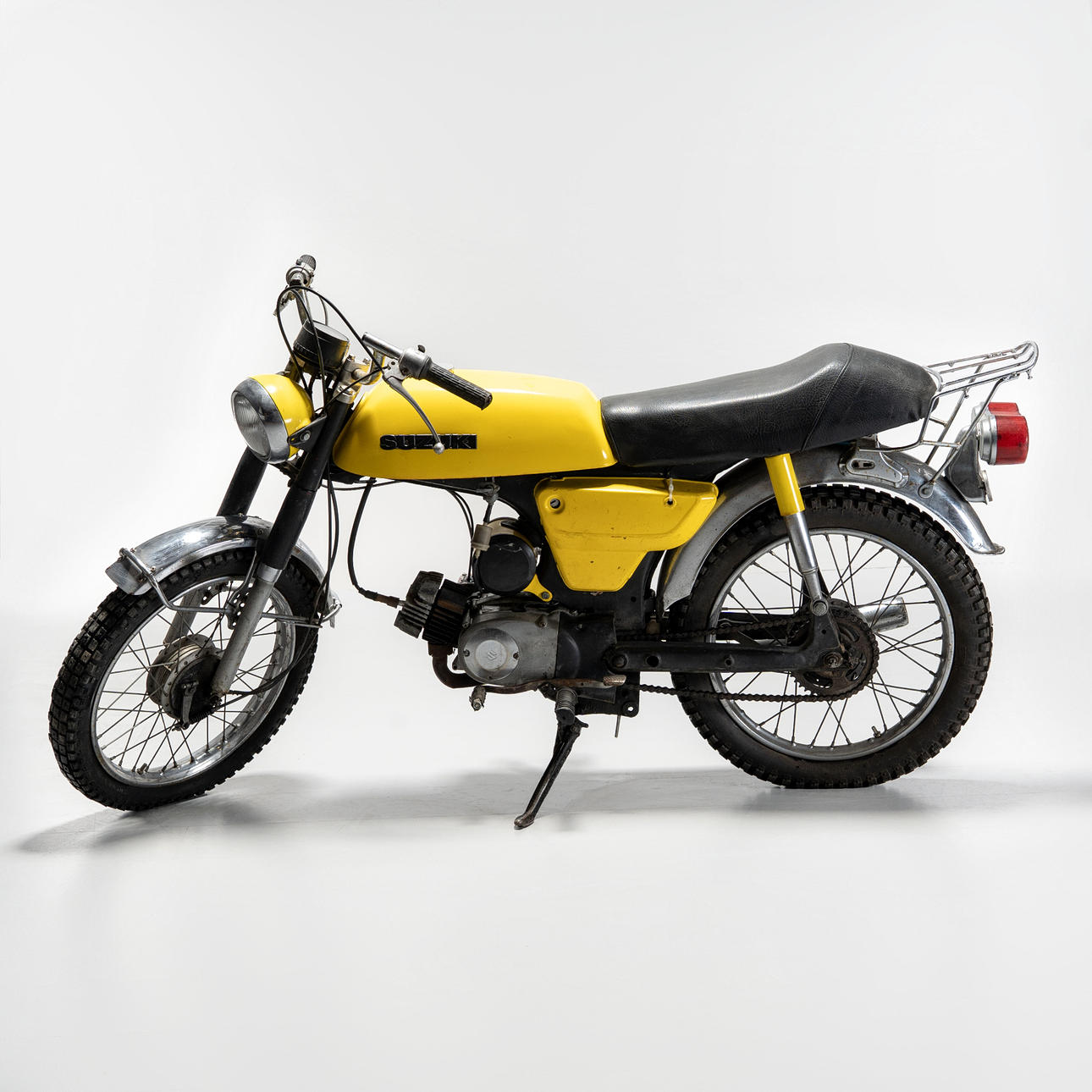 Scheinbar vollständig, altersbedingte Gebrauchsspuren, Kratzer, Spuren. Die Befestigungselemente an den Seitenabdeckungen sind defekt.