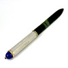 In einer Schachtel verpackter, emaillierter Brieföffner aus Silber und Gold, mit polierter Jadeklinge und Griff aus Lapislazuli und Rubin, L. 26 cm.