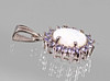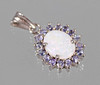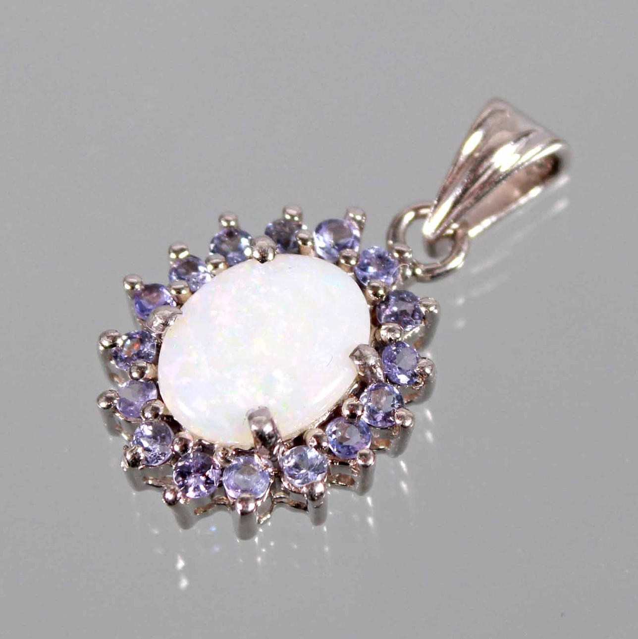 Opal - Tansanitanhänger in Silber 925 gearbeitet und punziert, Herstellermarke Harry Ivens, mittig mit einem Vollopal besetzt dieser eingeben mit 16 facettierten Tansaniten, Länge mit Trageöse 25 mm, Breite 14 mm, Gewicht 2,6 Gramm.