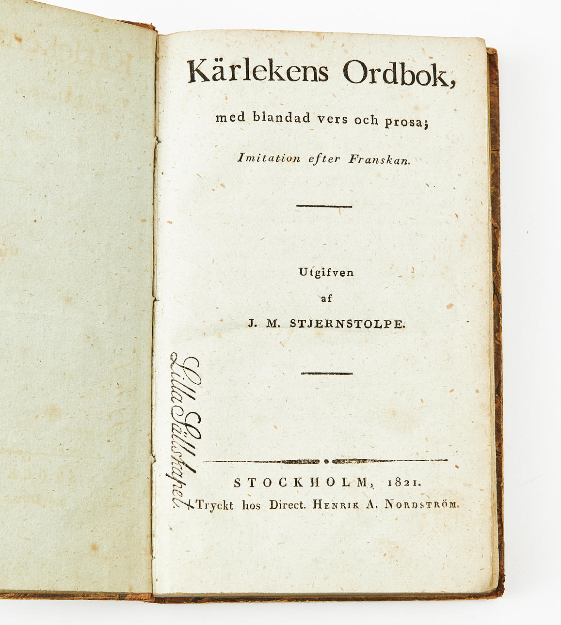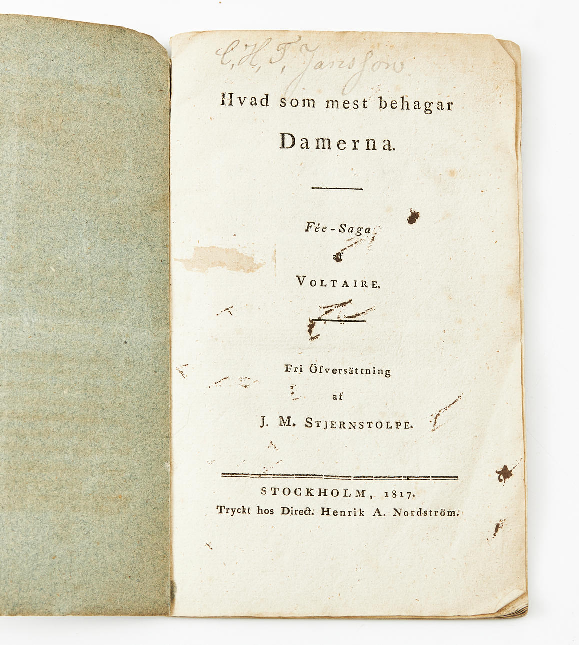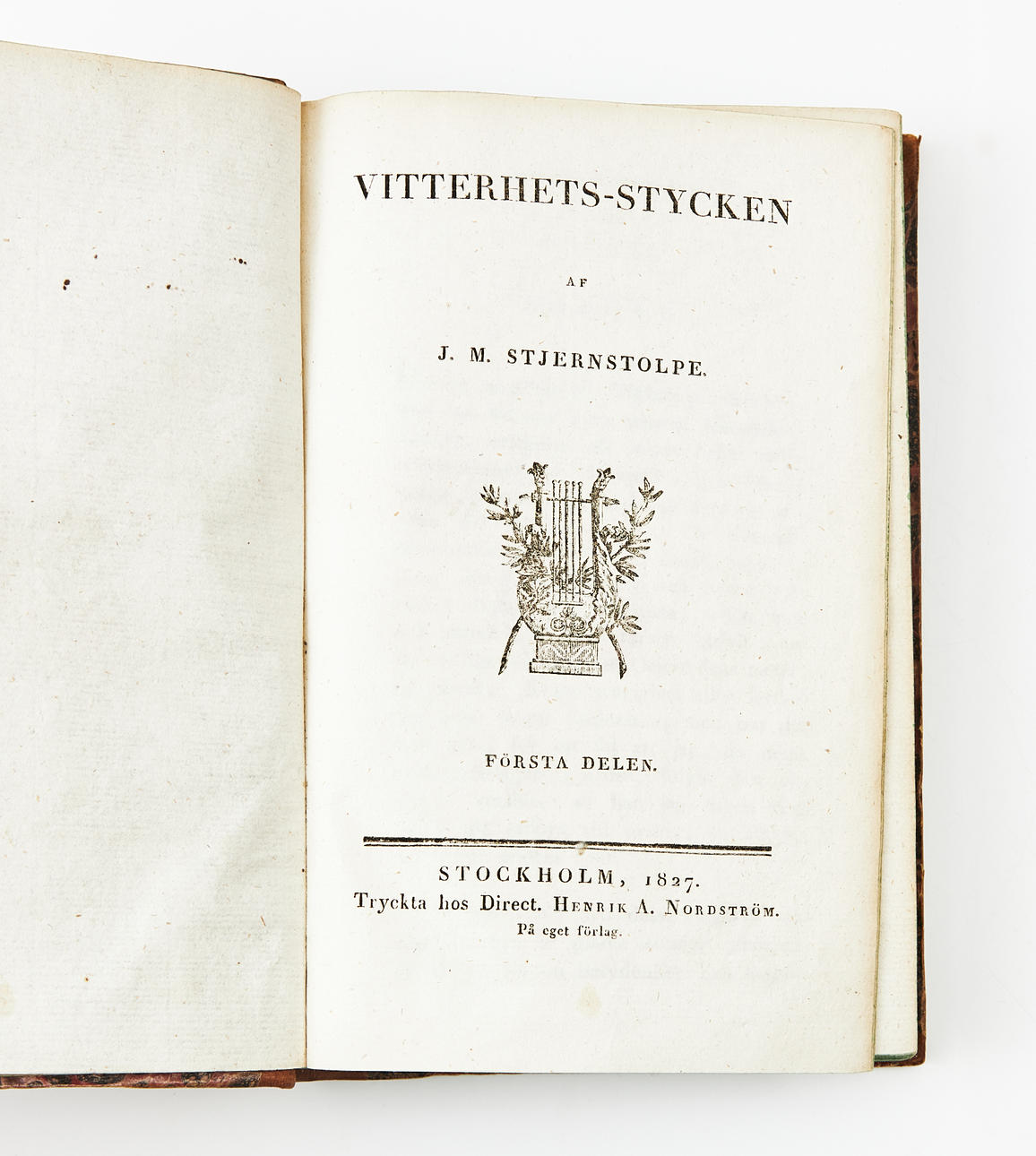 STERNPOL, J. M. Originalwerke und Übersetzungen, darunter unter anderem. und. Wörterbuch der Liebe, Nachahmung des Französischen (1821); Geschichte der Flibustiers. I-II, (1826); Was den Damen gefällt, Fée saga af Voltaire (1817); Ernst Moritz Arndts Reise durch Schweden 1804, I-IV, (1807-1808); Vitterhets-Stücke, (1827), 13 Bände.