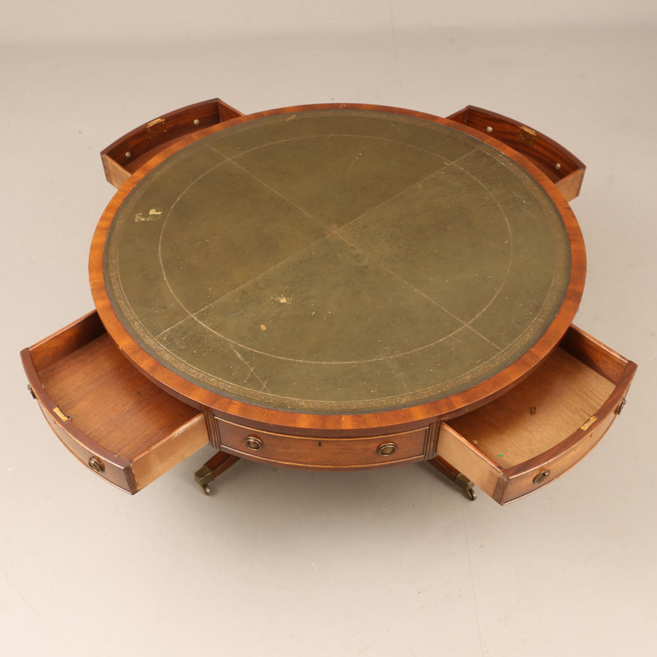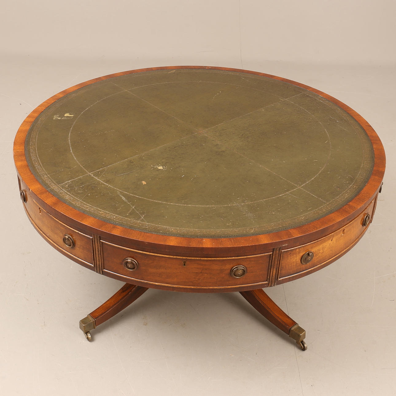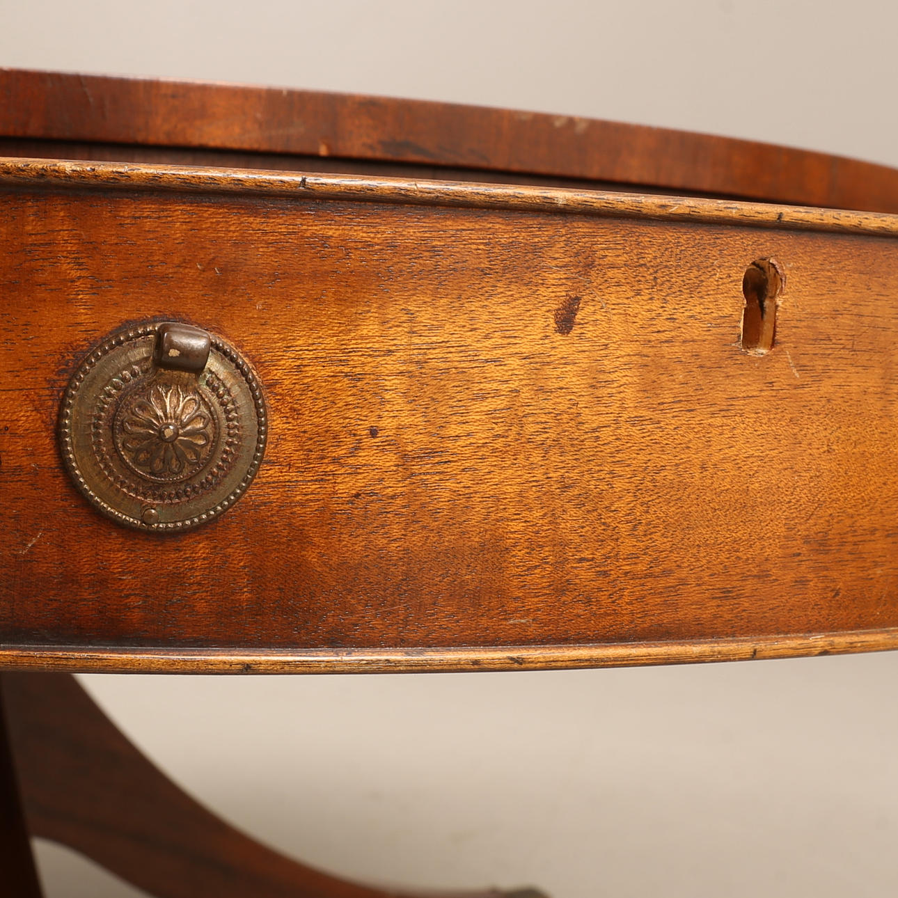 Verschleiß, Abrieb, Kratzer, Spuren. Einige Beschläge fehlen. Fuß mit Reparatur.
