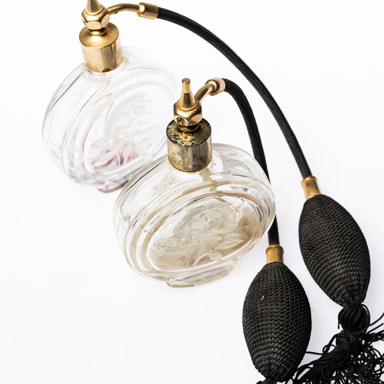 4244941. PARFÜMFLASCHEN, 1 Paar, Glas mit Pumpe.