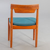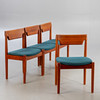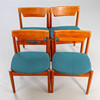 Gestelle aus Teakholz. Sitze aufgepolstert und mit Stoff bezogen.