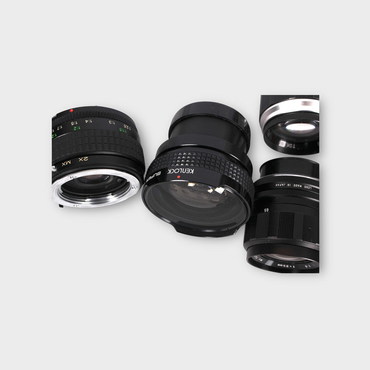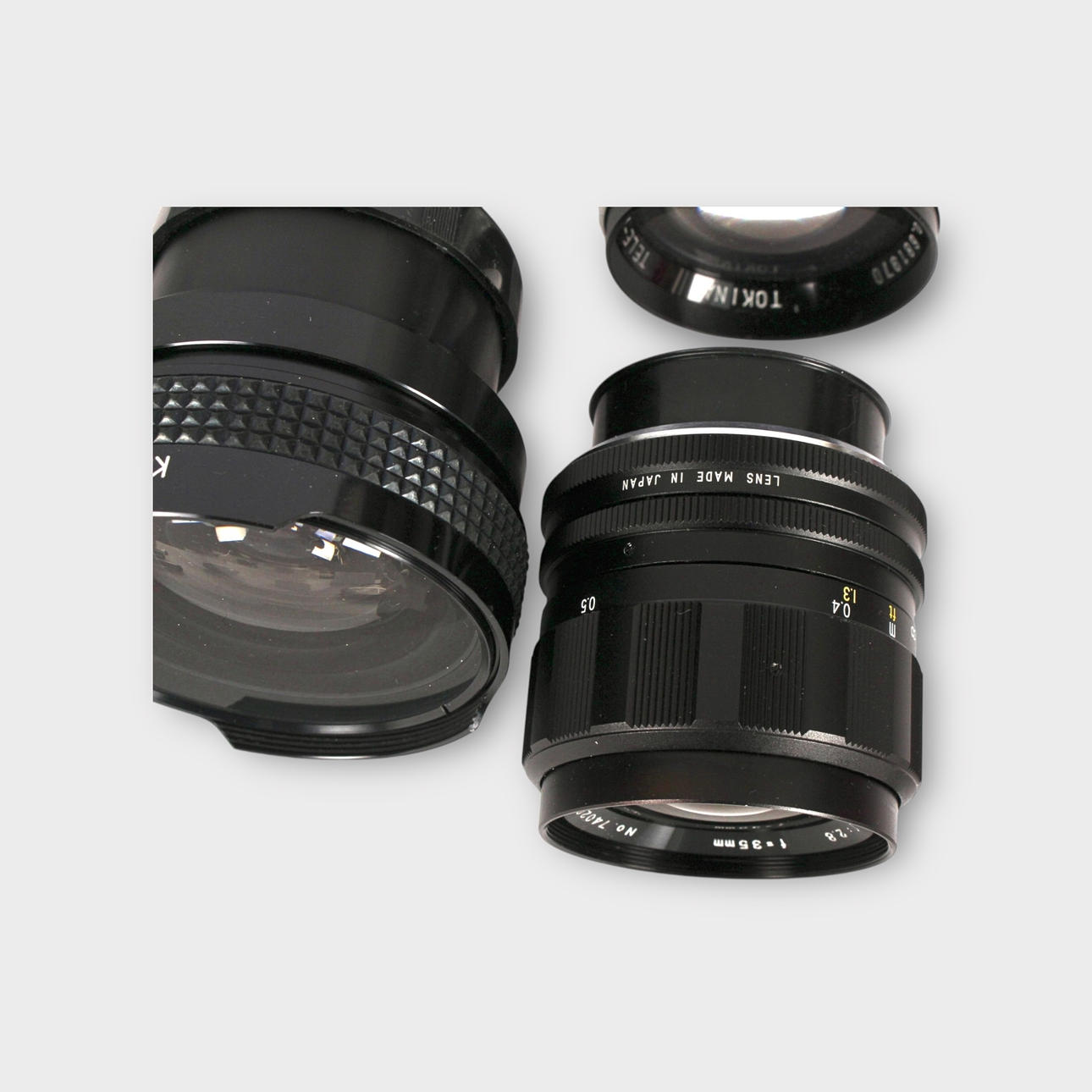 Ein Satz von 4 Objektiven, einschließlich Tokina, Japan.
