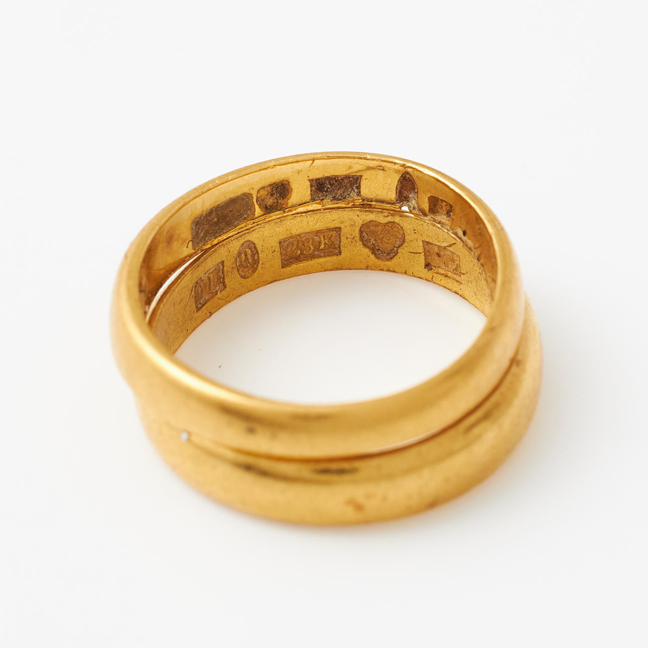 4252850. TRAURINGE, 4 Stück, 23 k Gold.