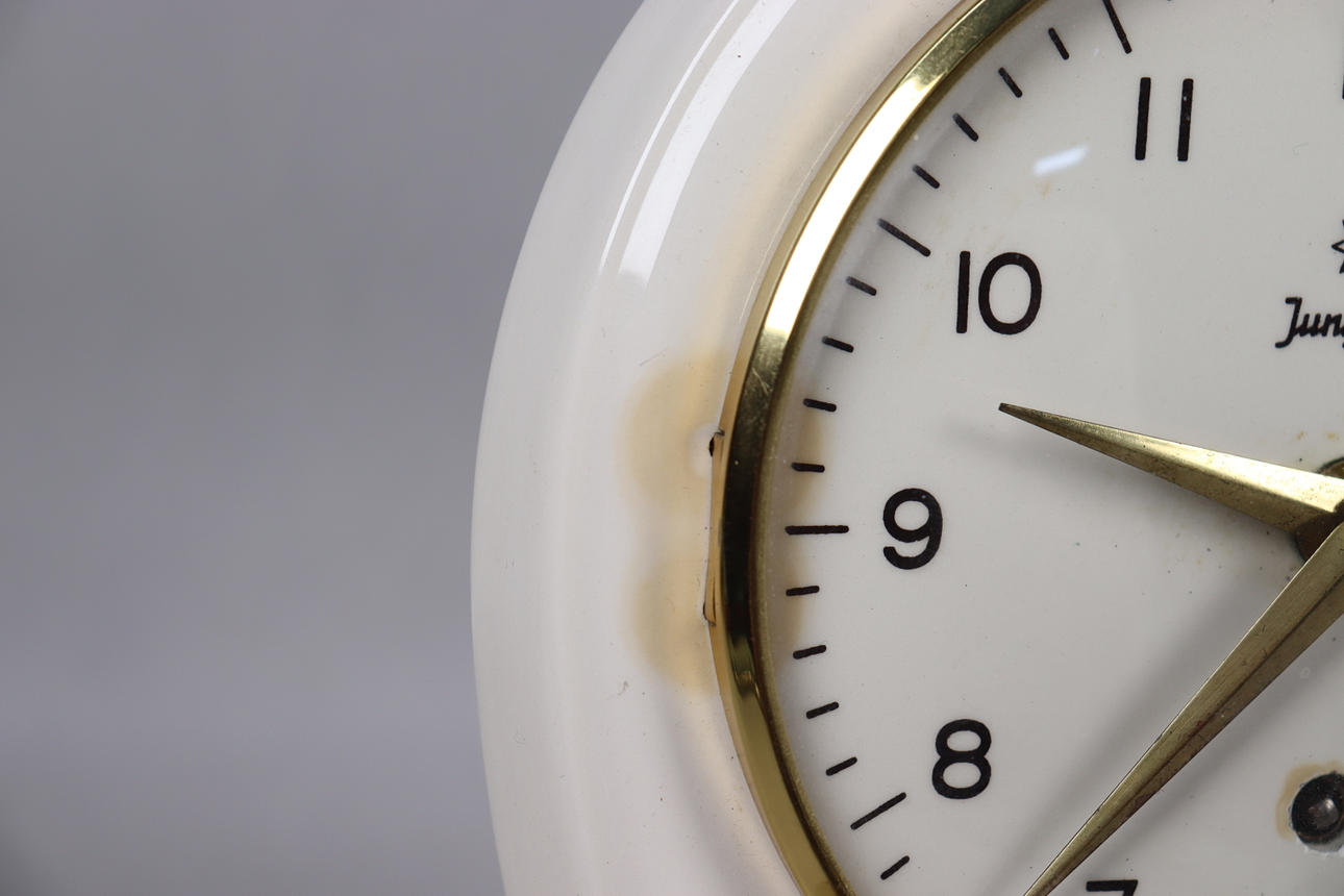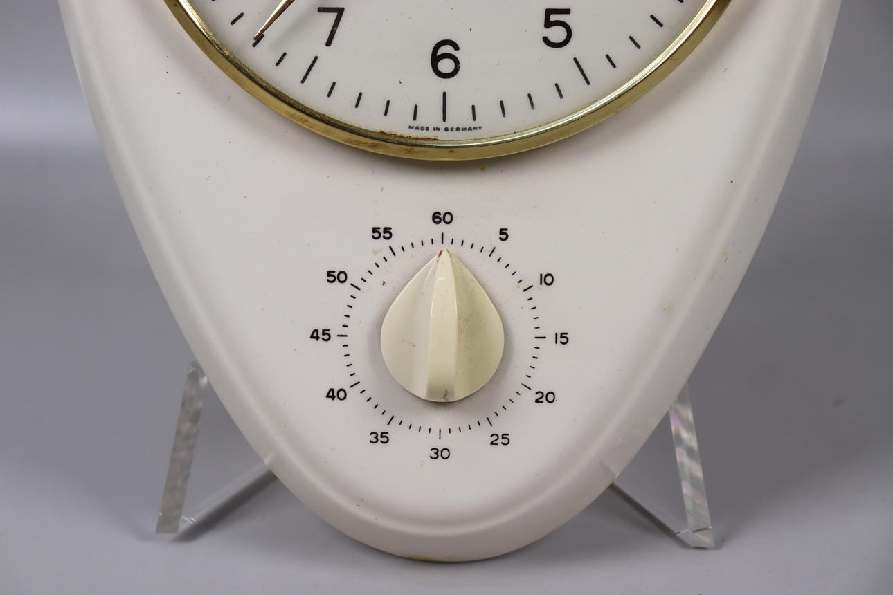 MAX BILL, Junghans, Küchenuhr mit Timer aus den 1950er Jahren.