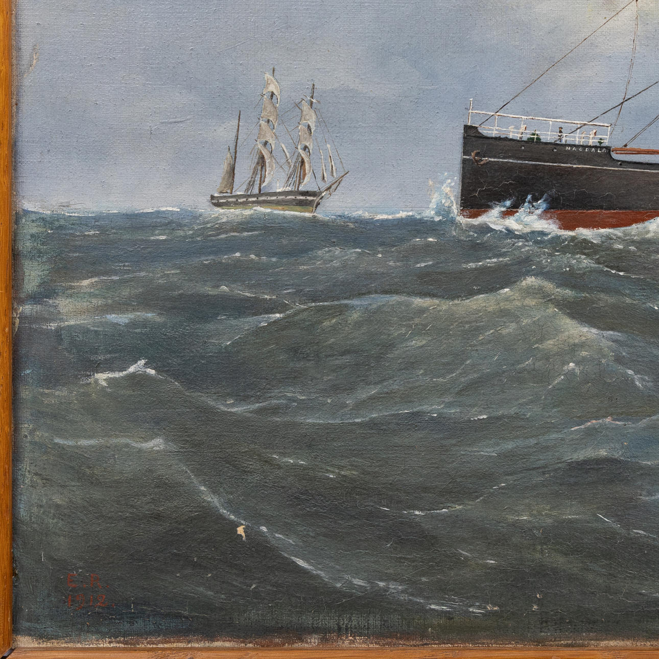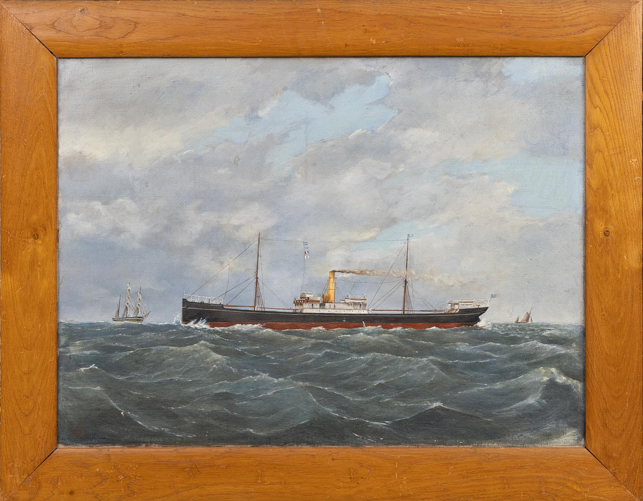 4253584. OIDENTIFIERAD KONSTNÄR. Dampfschiff, Oja auf Leinwand, erste Hälfte des 20. Jahrhunderts, undeutlich signiert.