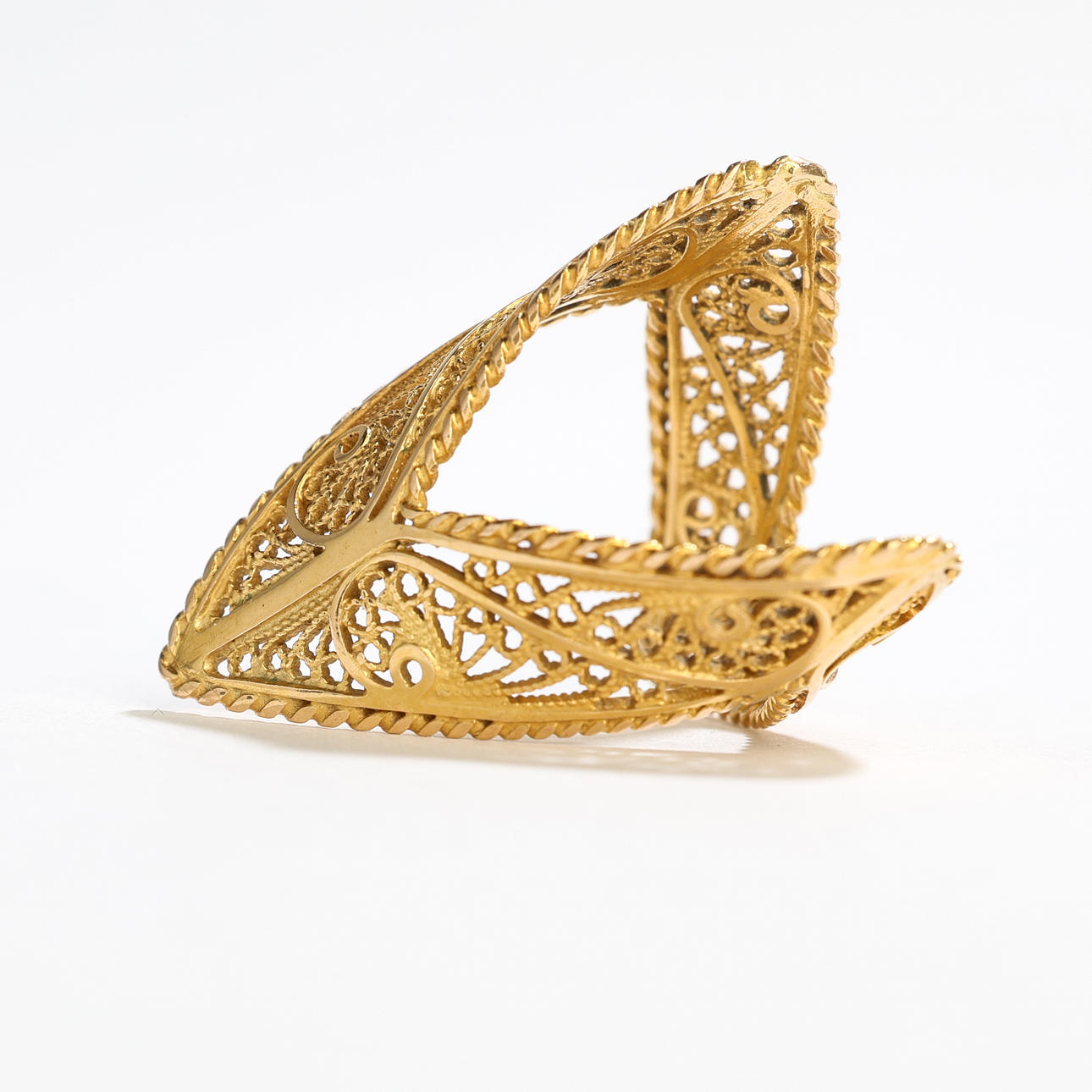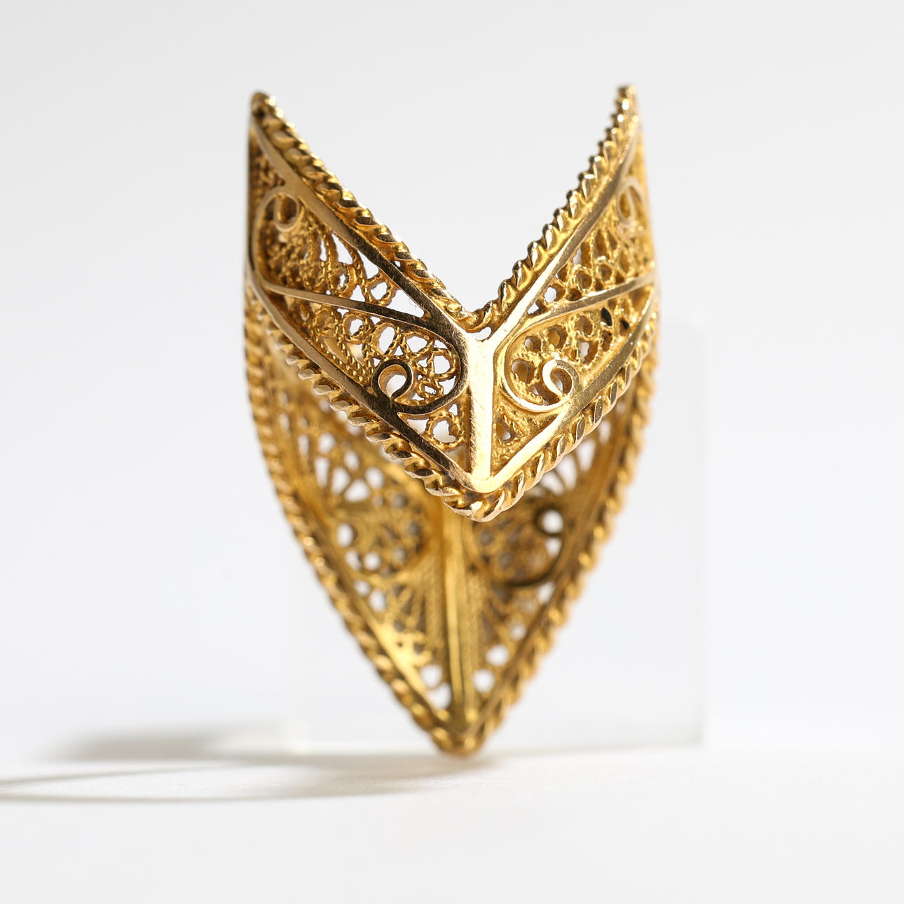 RING, 18 K Gold, filigrane Arbeit, durchbrochen, V-Form.