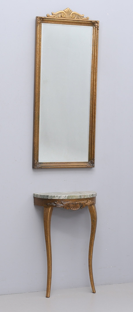 4254068. Ein Spiegel mit einem Holztisch, 20. Jahrhundert.