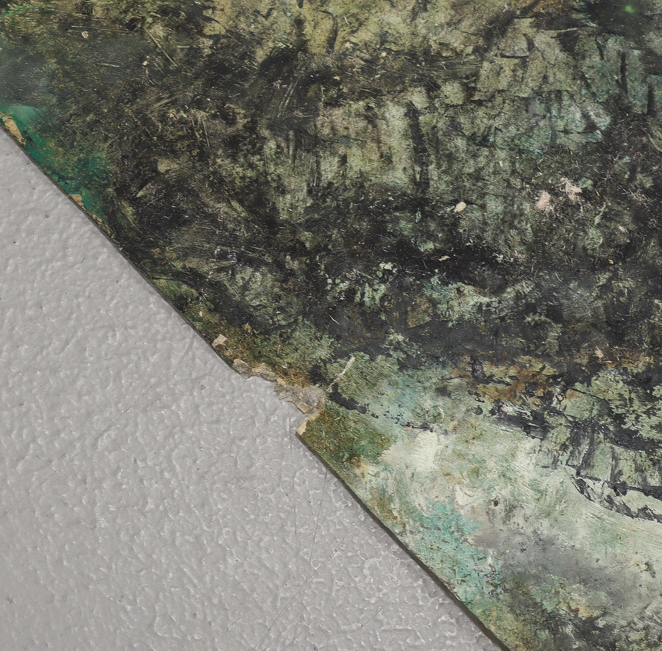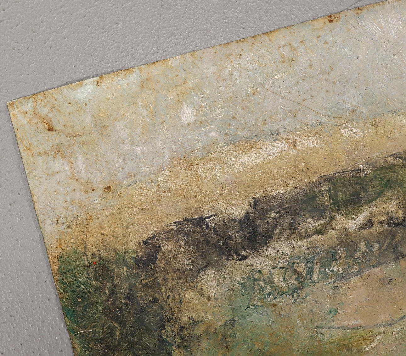 Gebrauchsspuren. Oberflächenschmutz. Flecken. Träne. Nicht gerahmt.