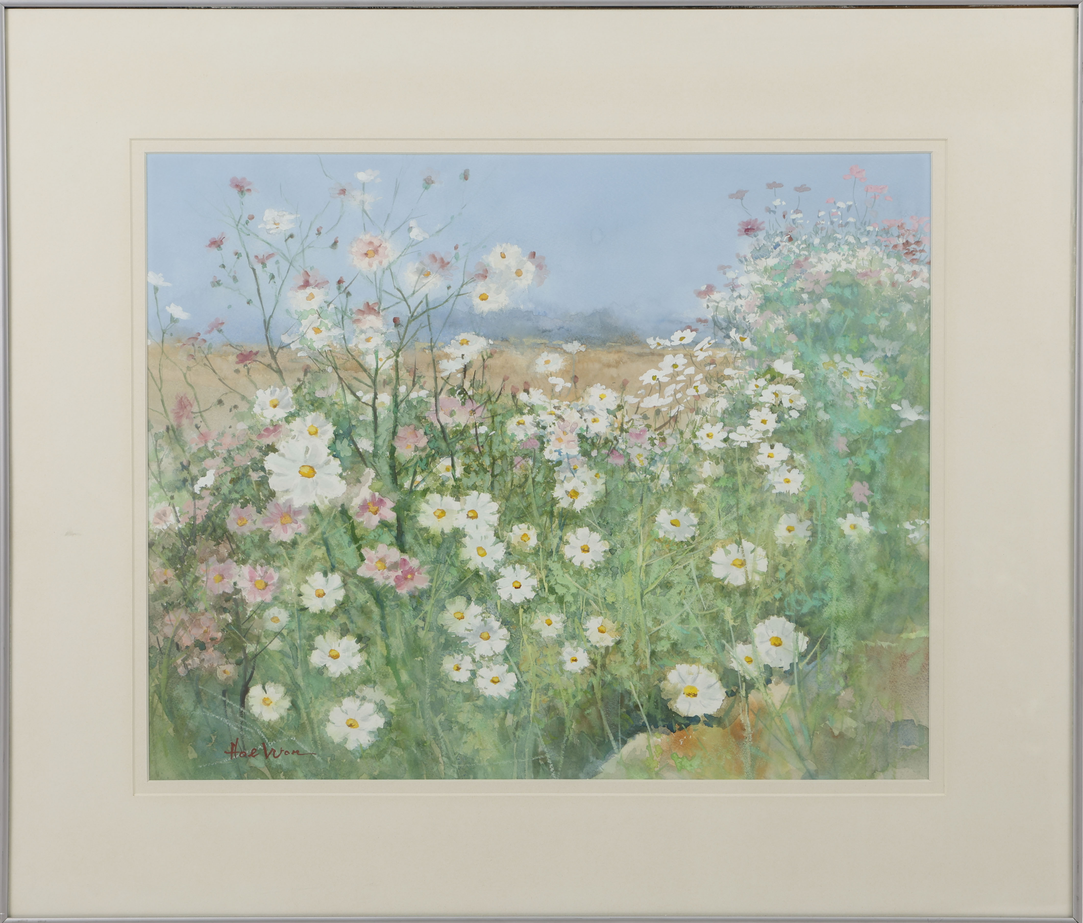 4255031. OIDENTIFIERAD KONSTNÄR. Blumenfeld, Aquarell, signiert.