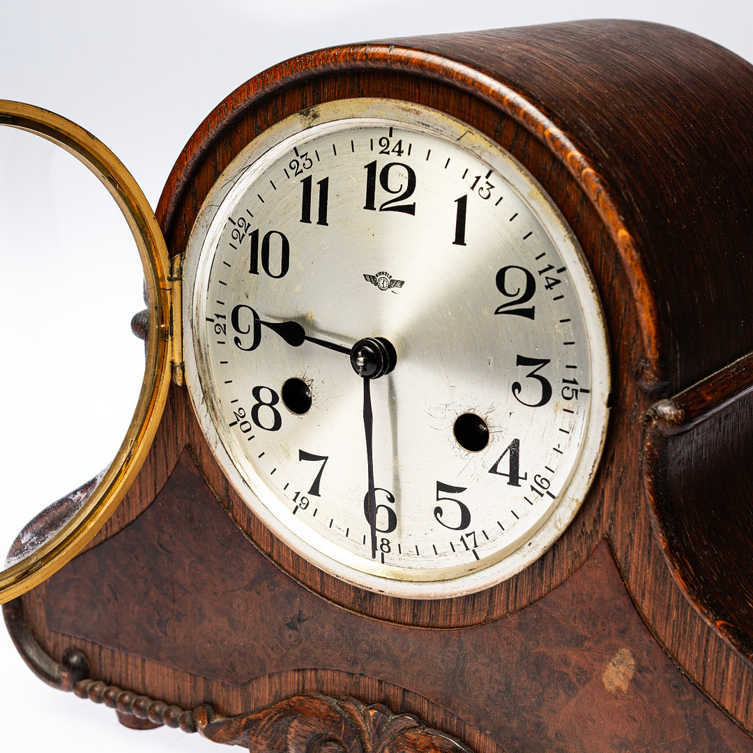 4258672. Tischuhr aus Eichenholz, erste Hälfte des 20. Jahrhunderts.