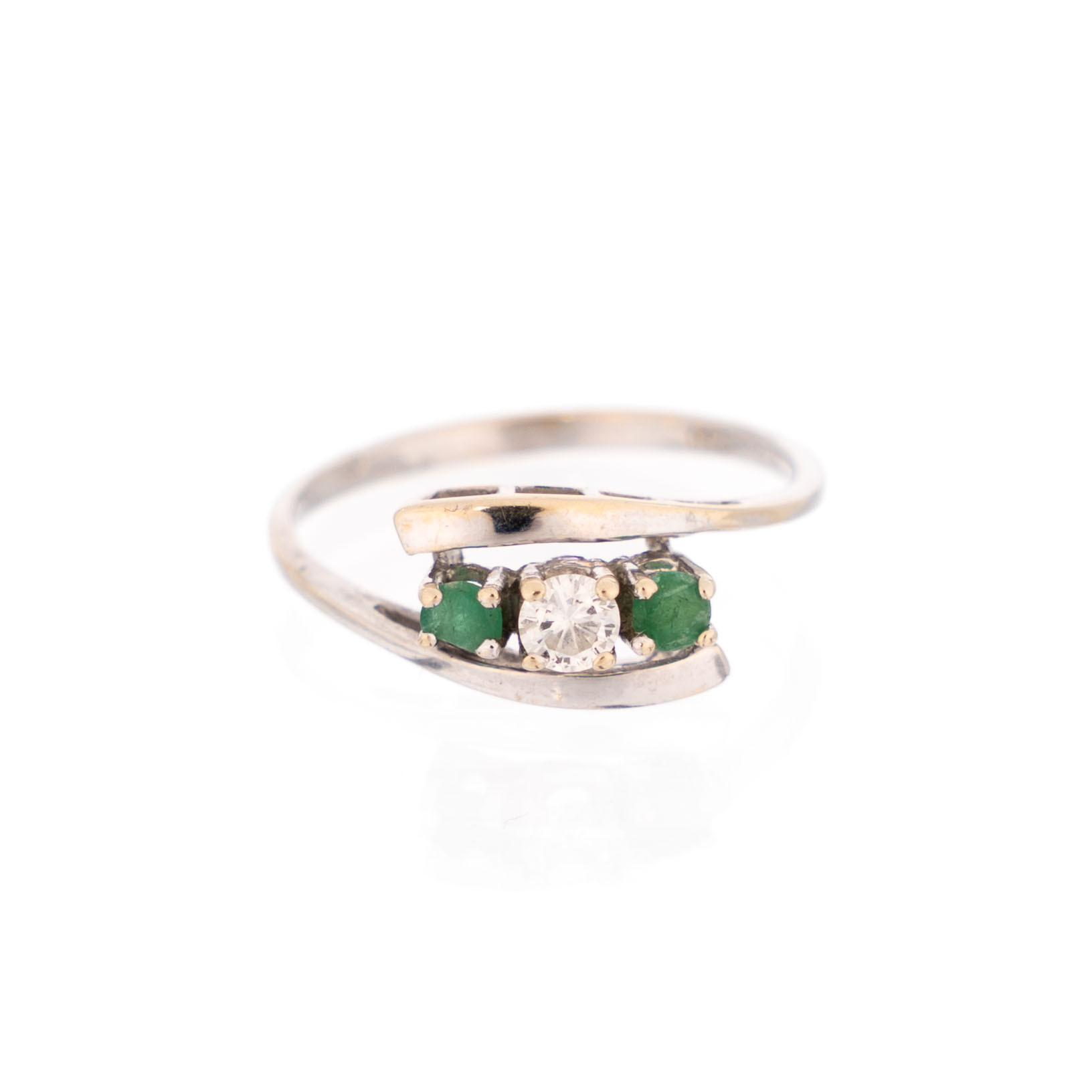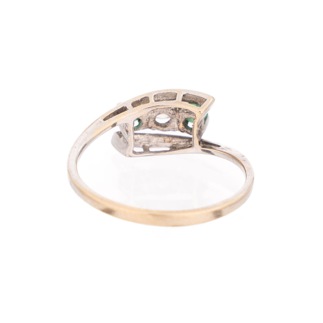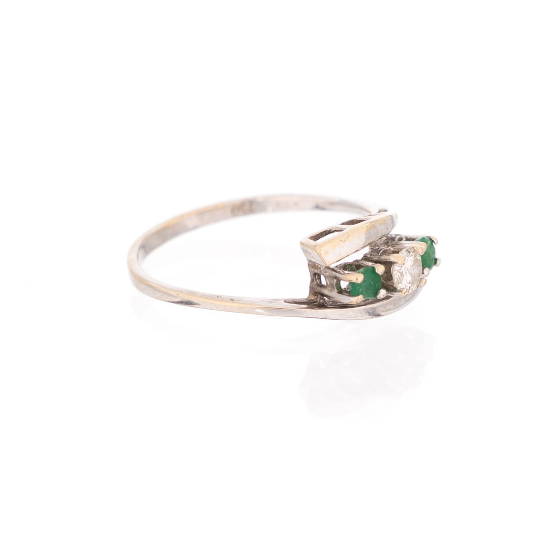 4258707. RING, 18 K Gold, besetzter Diamant und Smaragde.