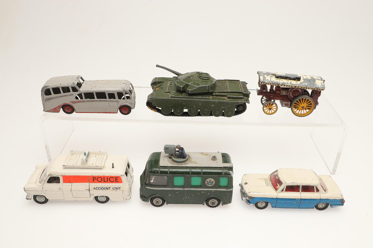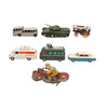 Inklusive Schuco-Motorrad und Fahrer, Modell Nr. 1012 (12 cm lang), auch mit ausgepacktem Druckgussspielzeug (einschließlich Dinky Toys TV Roving Eye usw.).