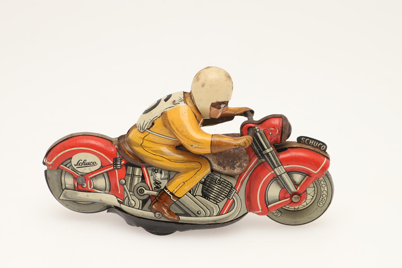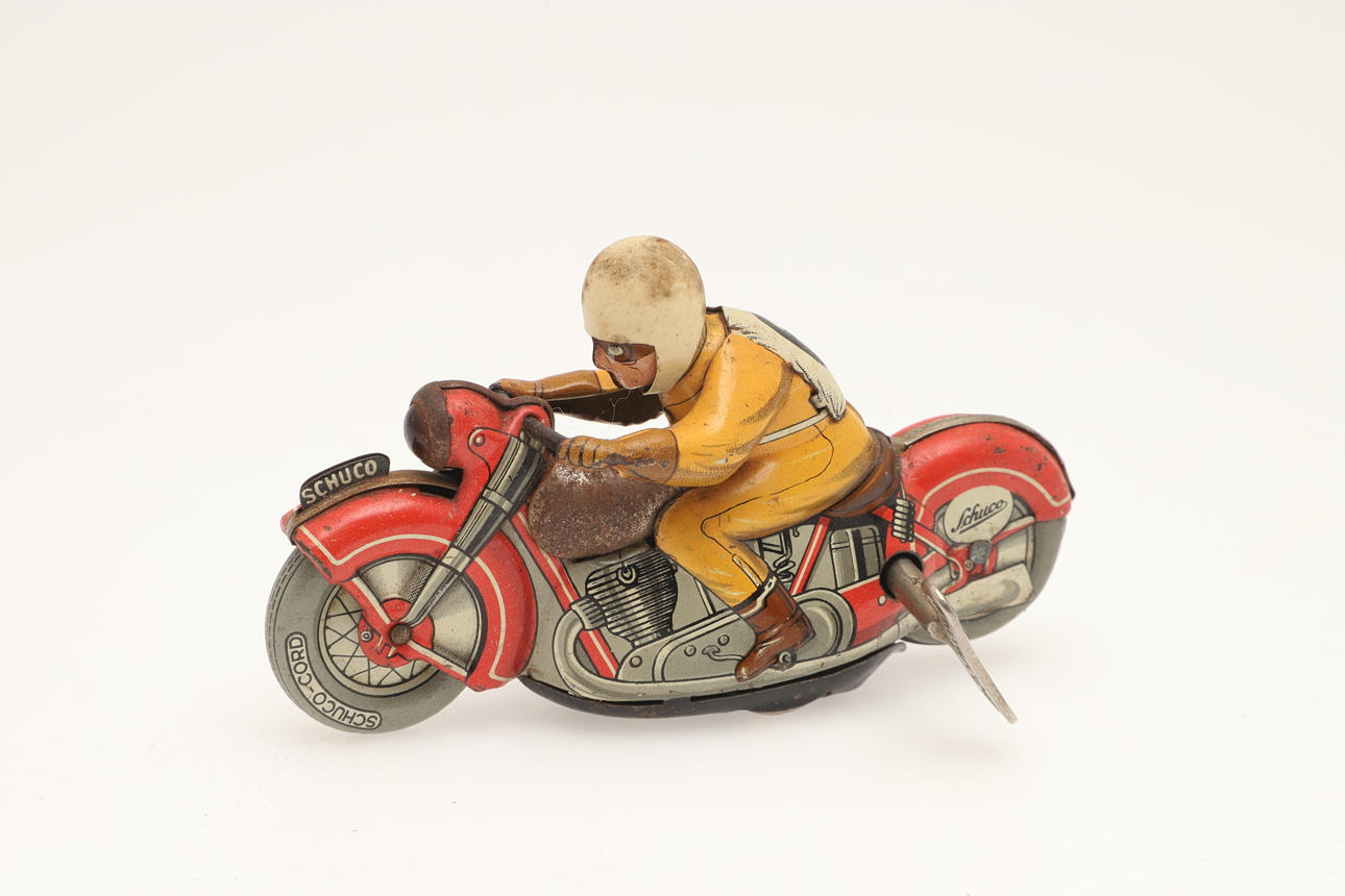 4259132. SCHUCO CLOCKWORK MOTORRAD- UND DRUCKGUSSSPIELZEUG.