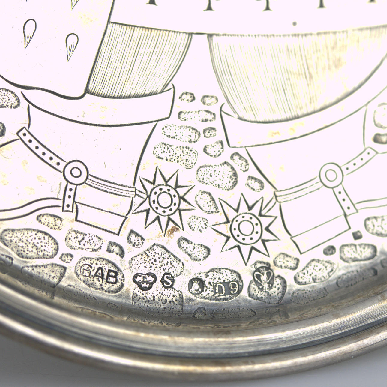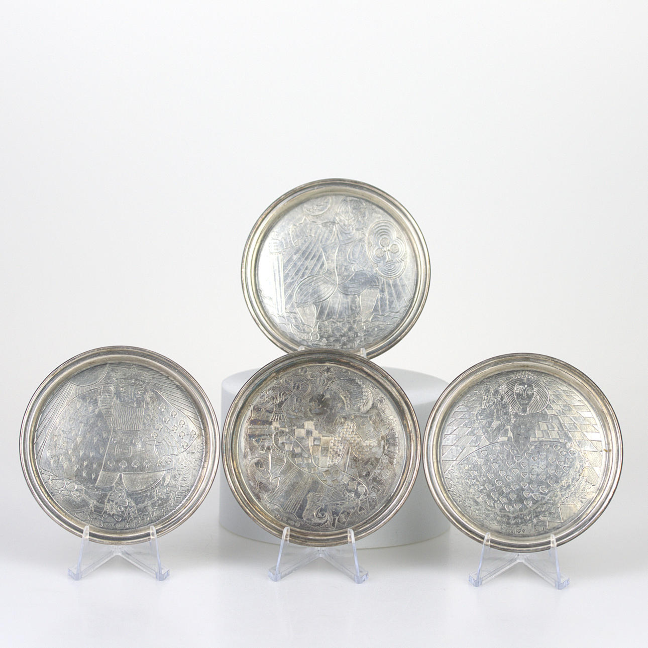 4 Untersetzer mit Muster, Guldsmedsaktiebolaget, Stockholm 1954, Durchmesser 8 cm.