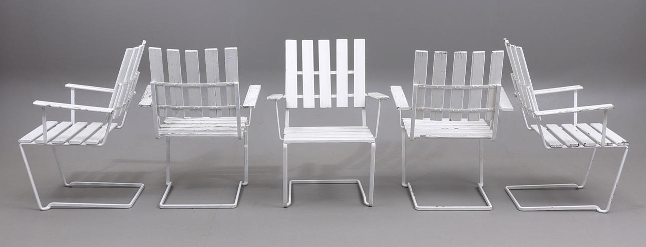 4260009. GRYTHYTTAN, Gartenstühle, 5 Stück, Eisen mit Holzlatten.