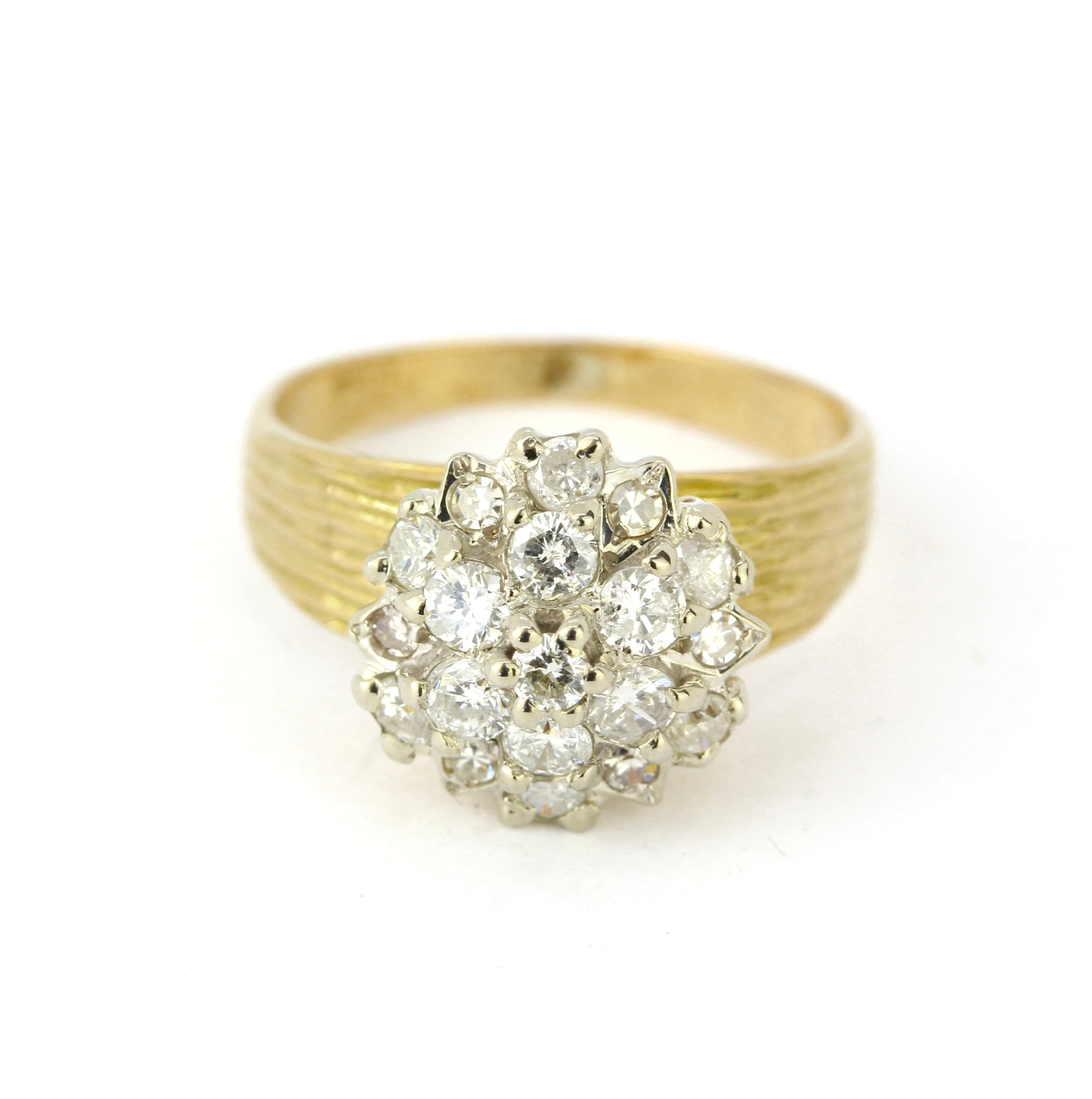 4261154. DIAMANT-CLUSTERRING AUS 18 KARAT GELBGOLD.