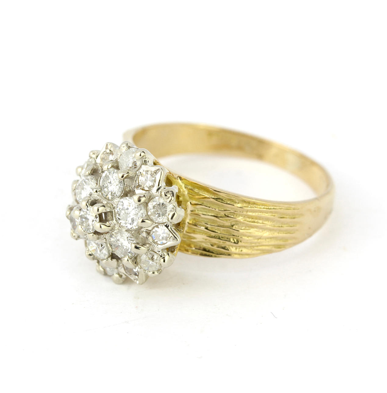 Ein Clusterring aus 18 Karat Gelbgold, besetzt mit Diamanten. UK-Ringgröße: L Gesamtgewicht: 4,5 g.