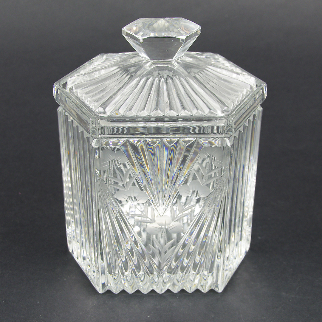 426401. GLAS MIT DECKEL UND 2 Deckel , Kristall.