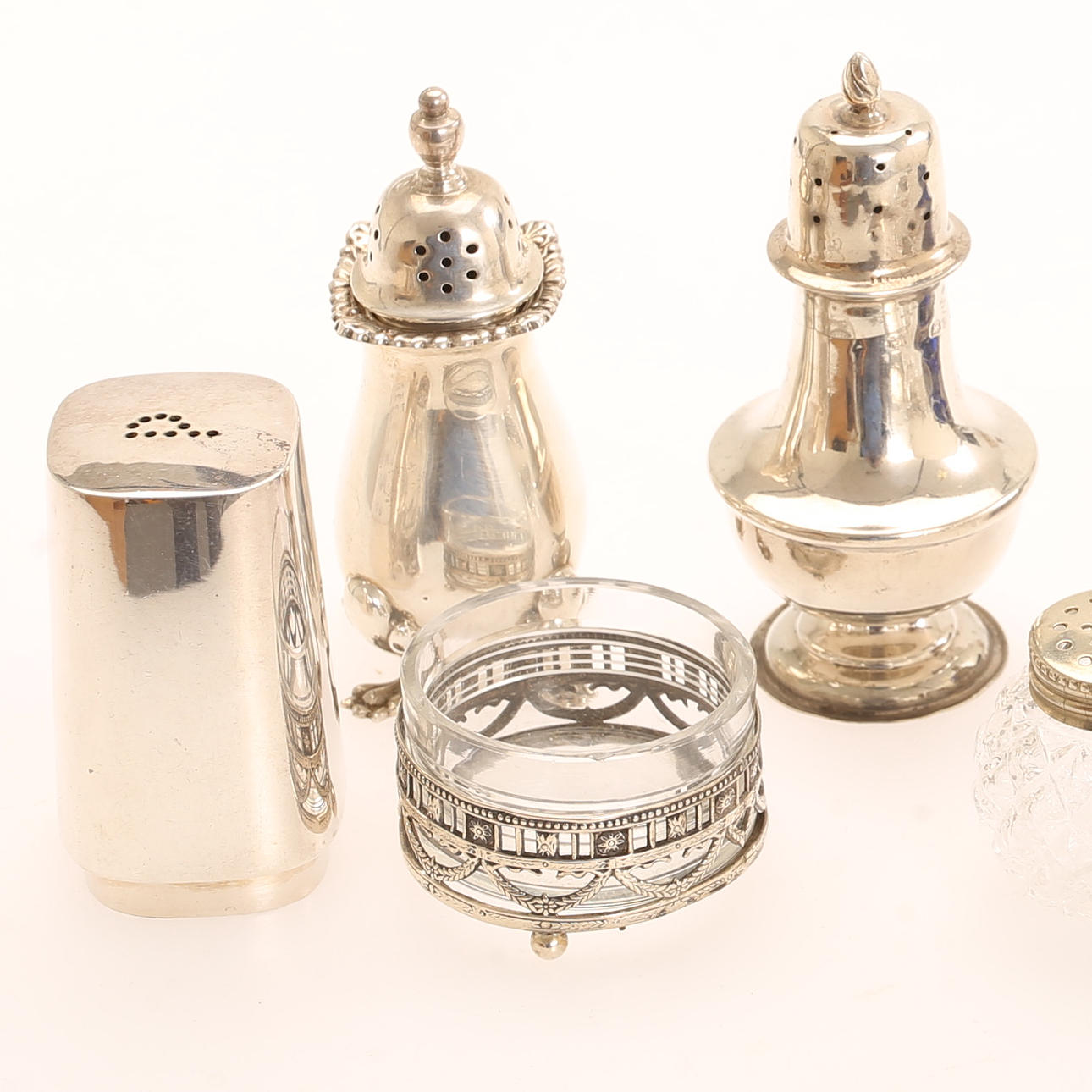 4264336. Ein Satz von 9 Salzgefäßen, Glas und Silber.