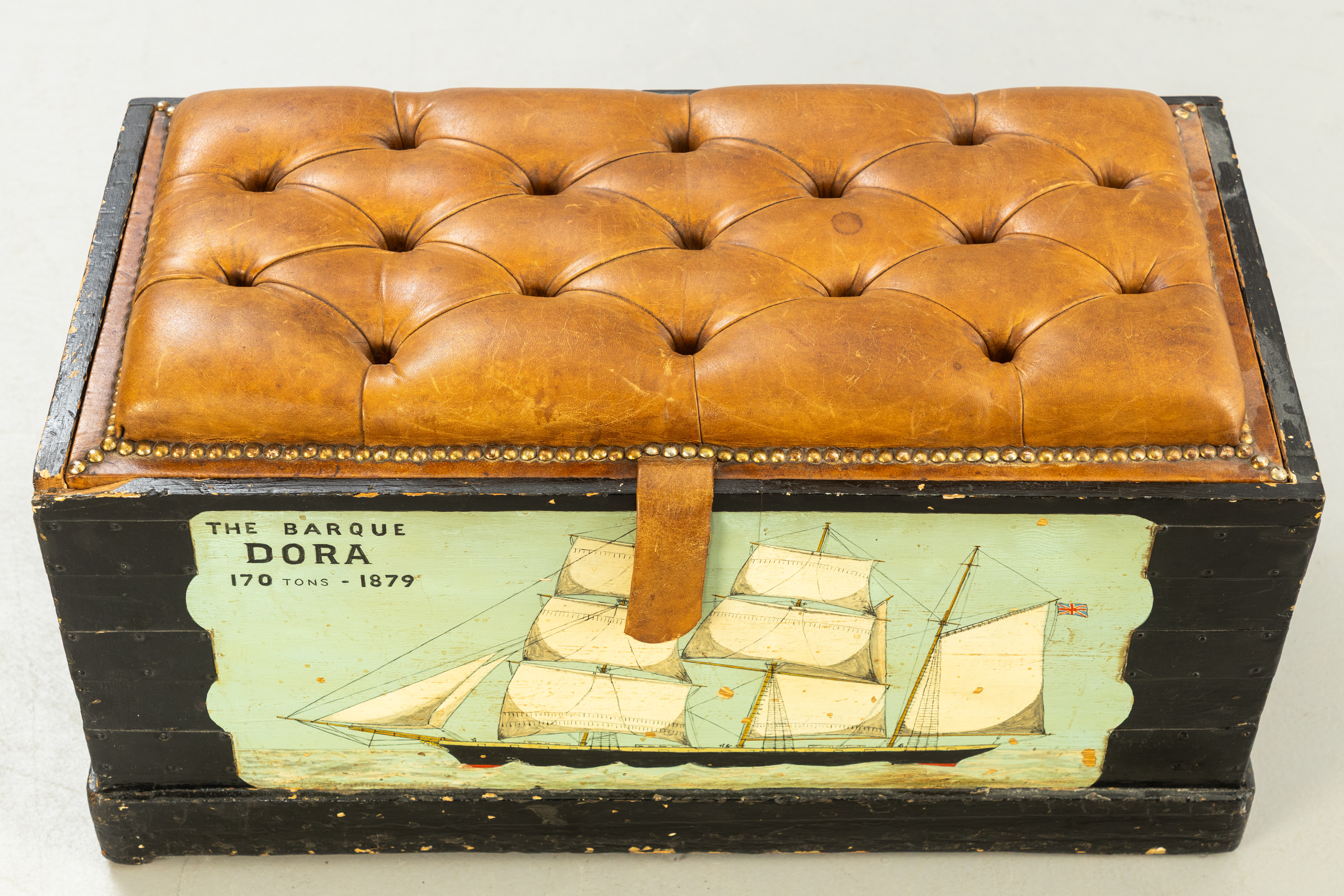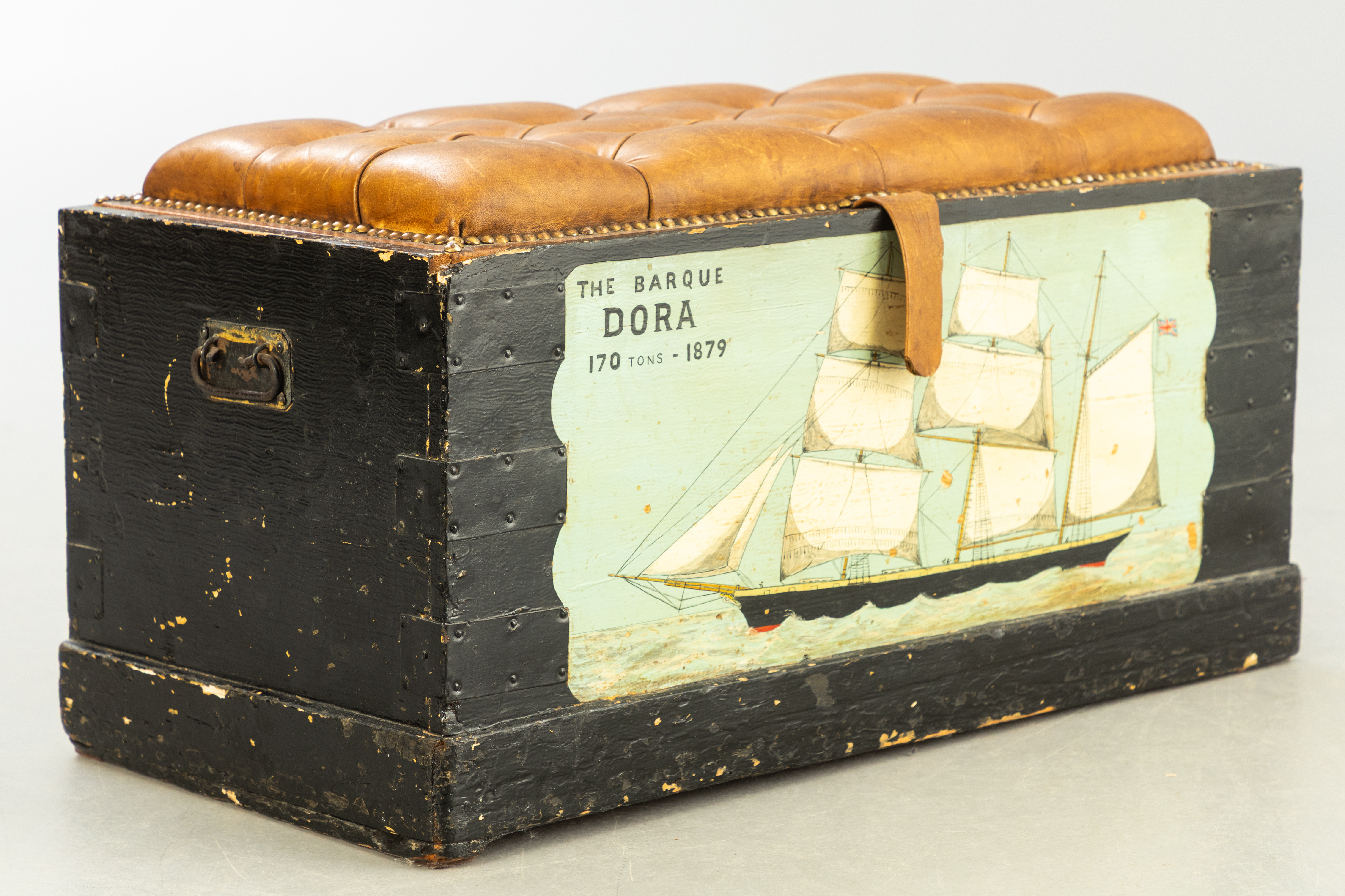 4265907. Flachdeckeltruhe ´The Barque Dora`, 20. Jh.